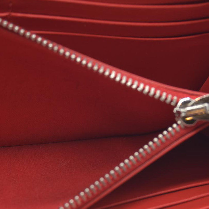 The Women’s Panettone wallet is a long-line wallet with a spacious interior. It has a variety of pockets for different purposes. This model is crafted in leche calf empire leather and is embellished with signature tonal Maison Christian Louboutin Loubinthesky spikes.