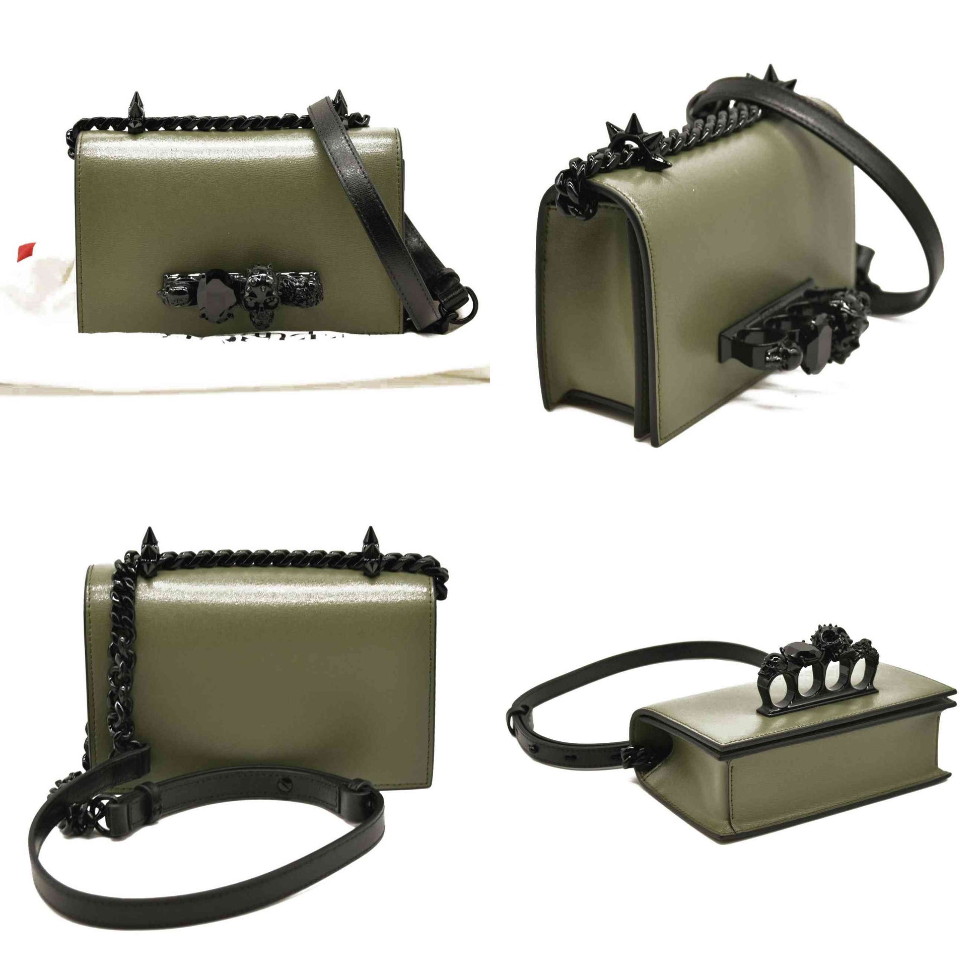 Alexander McQueen Calfskin Knuckle Skull Crossbody Khaki Green Black