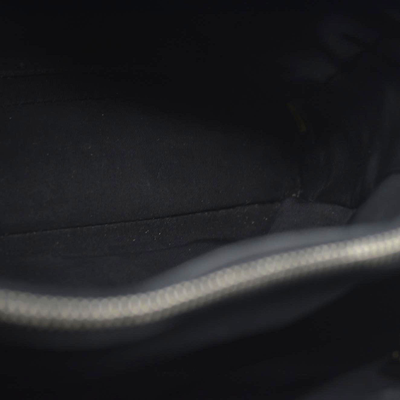 Moderate tearing at corner; minor scuffs throughout; minor residue at interior; minor discoloration throughout; shape has relaxed due to wear