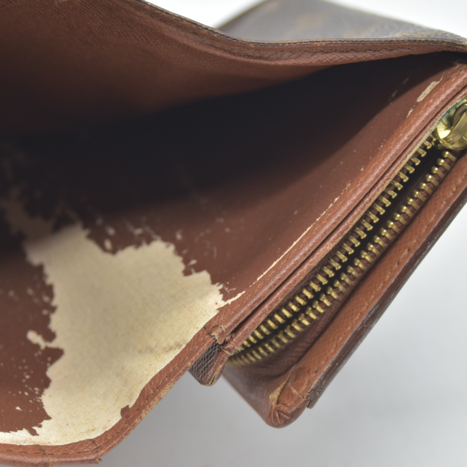 AUCTION $610 Louis Vuitton Monogram Porte Monnaie Zip Bifold Wallet Brown CA0947