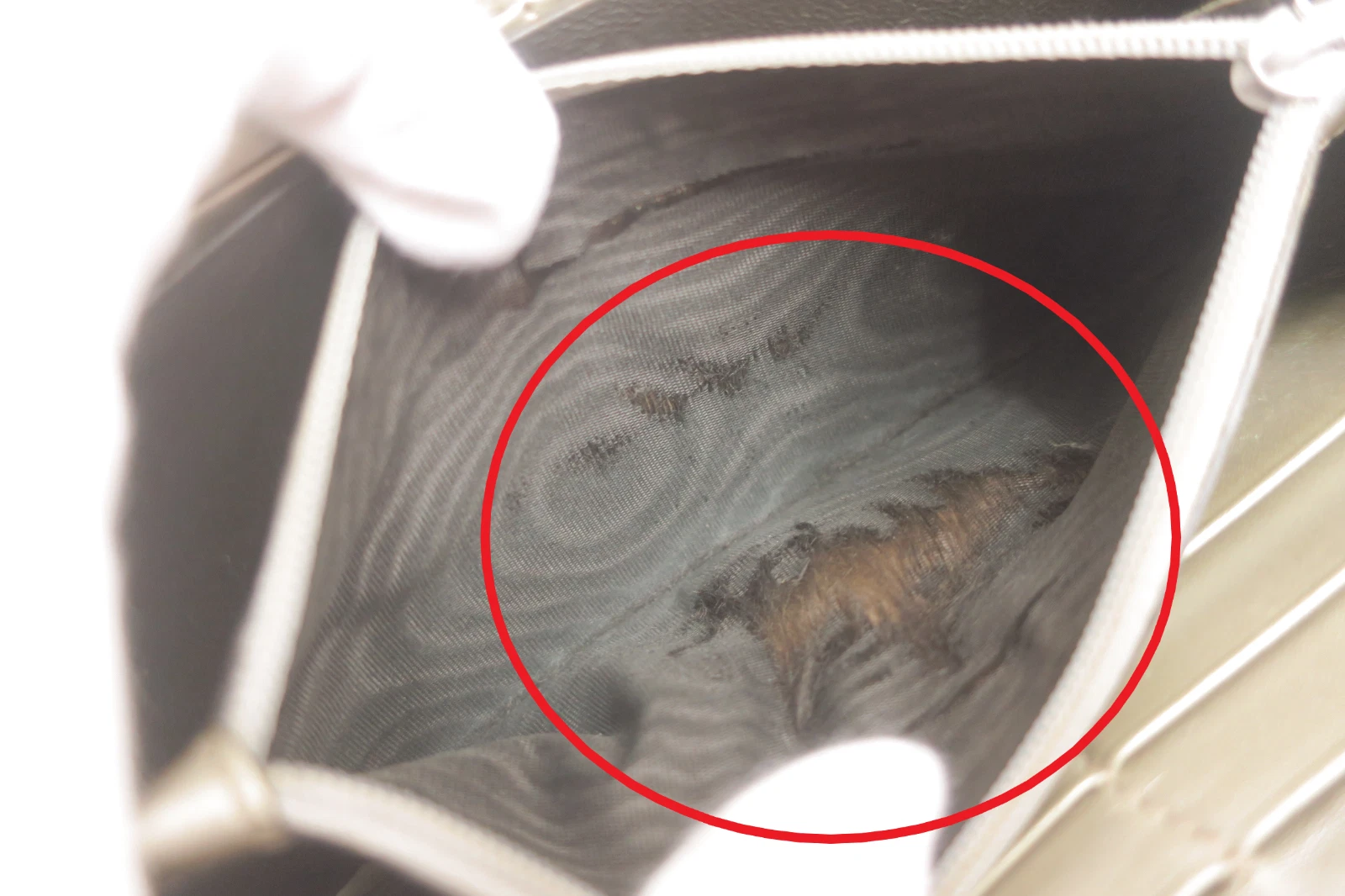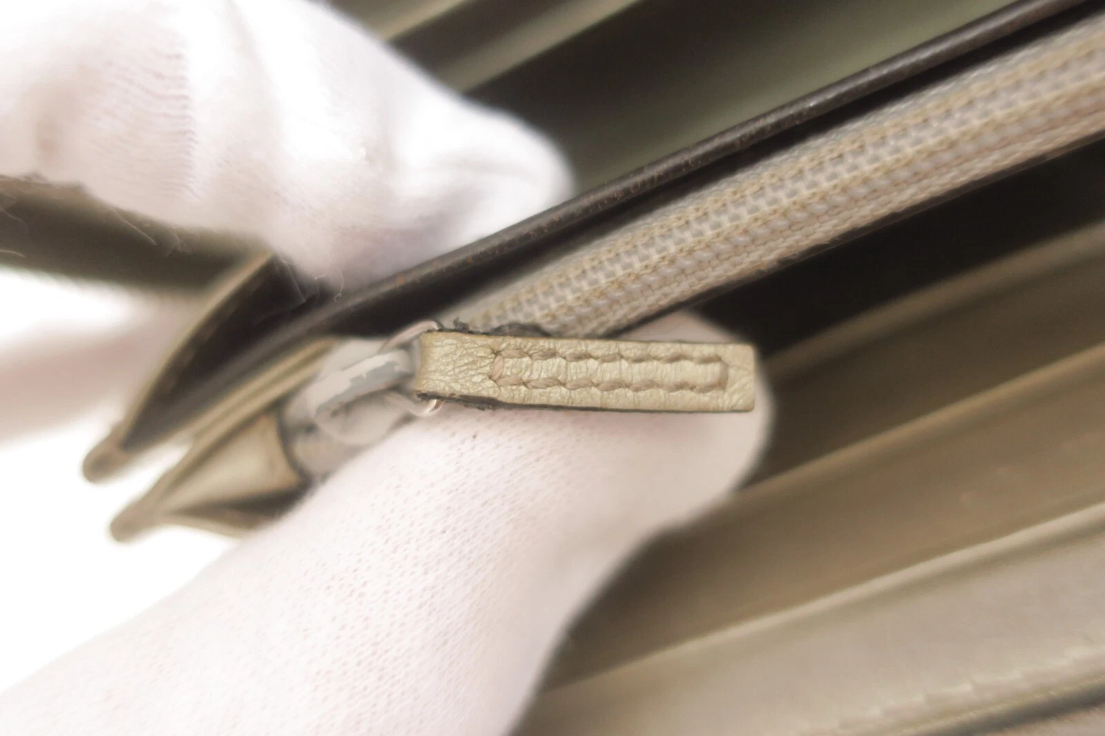 Condition Details The exterior shows minor deep scuffs and dark markings along the pipeline and the fabric material surrounding the zipper. Inside, the lining features minor scuffs alongside some light and dark markings from gentle use. The silver-tone hardware exhibits minor surface scratches.