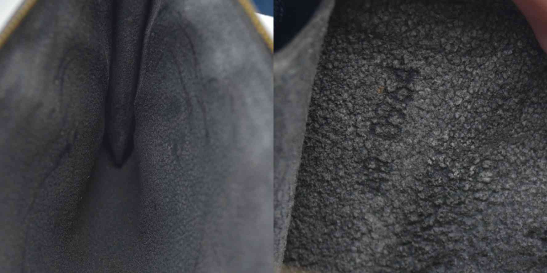 Outside:C(stains. rubbing.strap is peeling.shoulder strap is refinished by third party - it separated as was glued back together. zipper gets stuck at the beginning of the tape but is still functional. This bag originally does not have a D-ring for attaching a strap. Inside:C(stains.peeling and sticky. ).