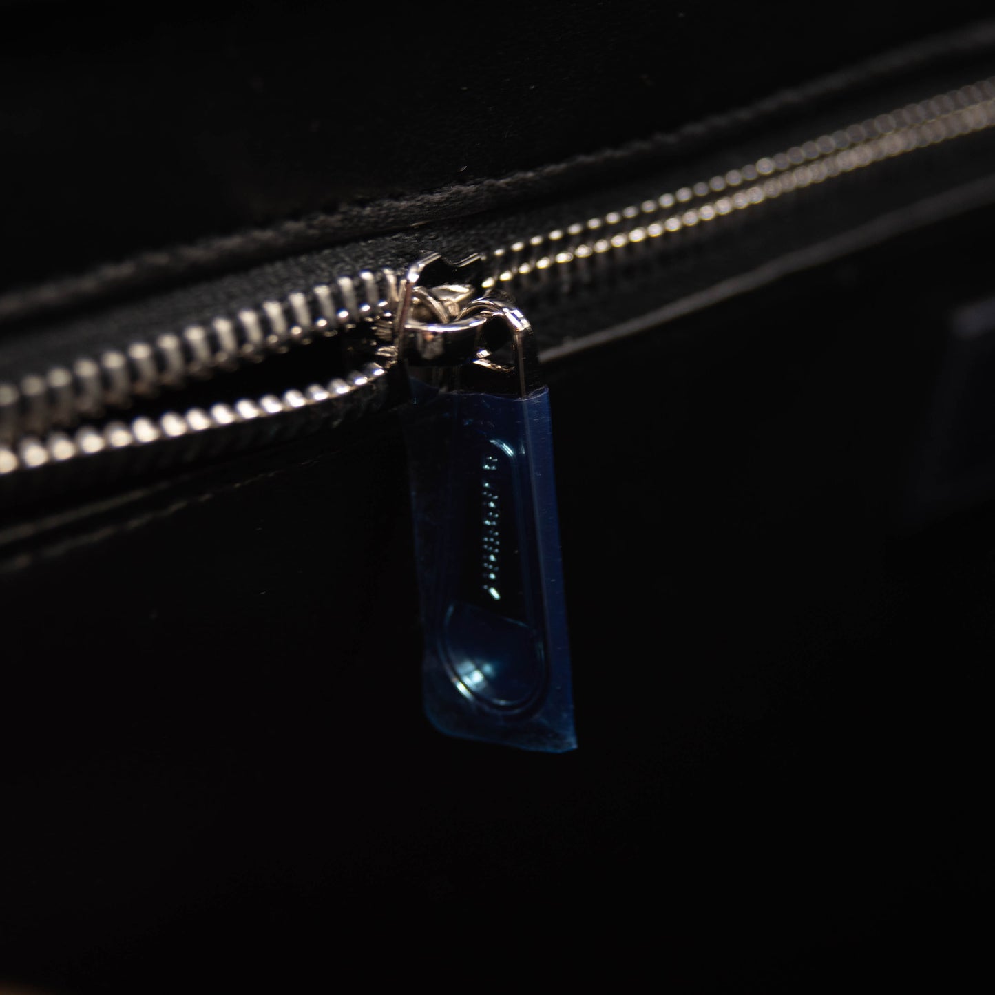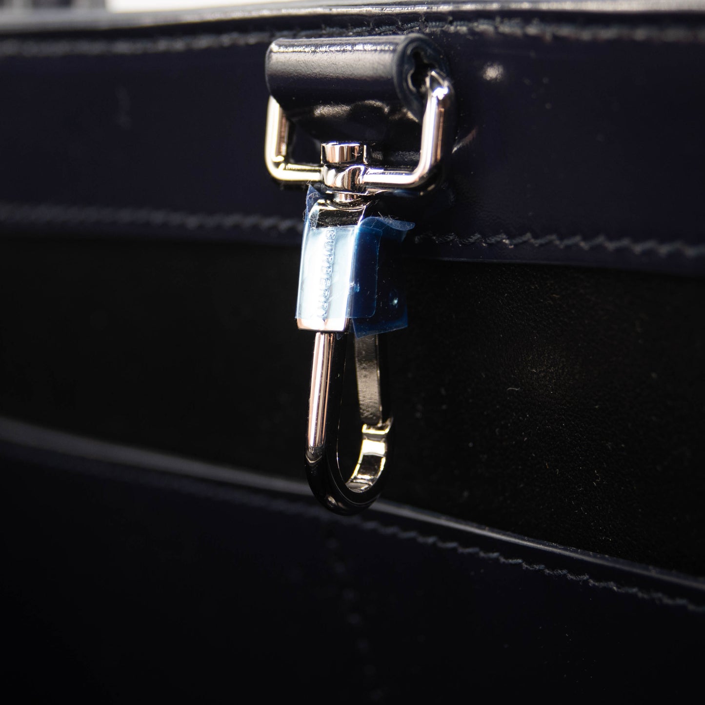 Burberry Denny Embossed Check Leather Tote Blue Patent Dark Charcoal