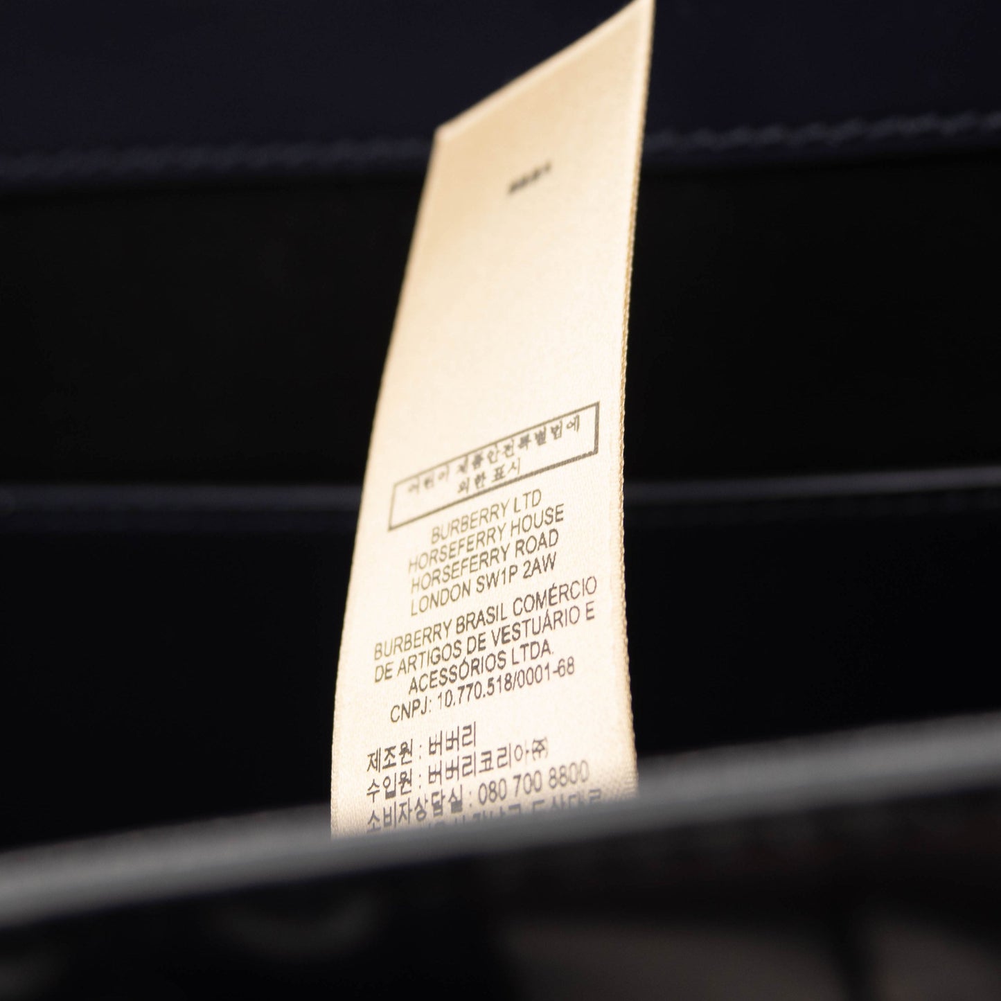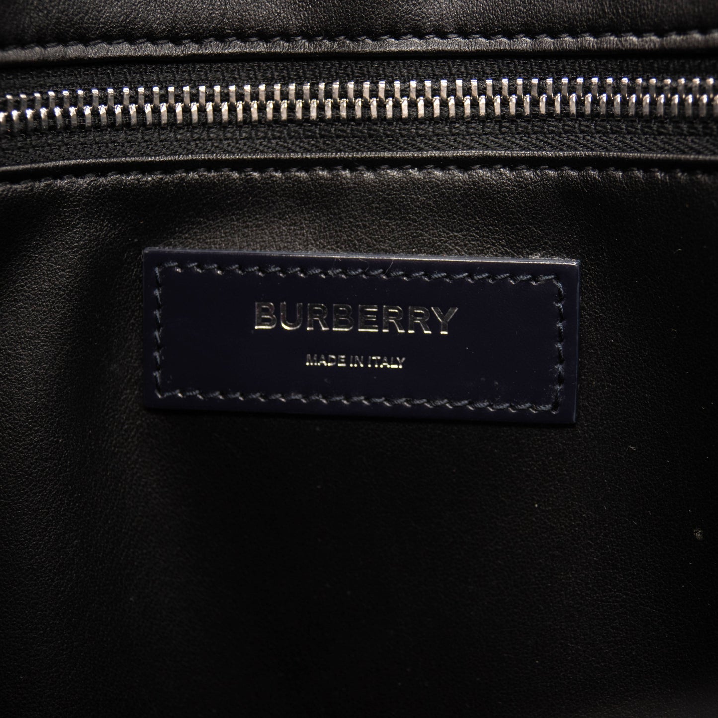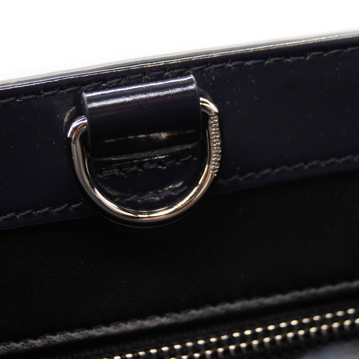 Burberry Denny Embossed Check Leather Tote Blue Patent Dark Charcoal