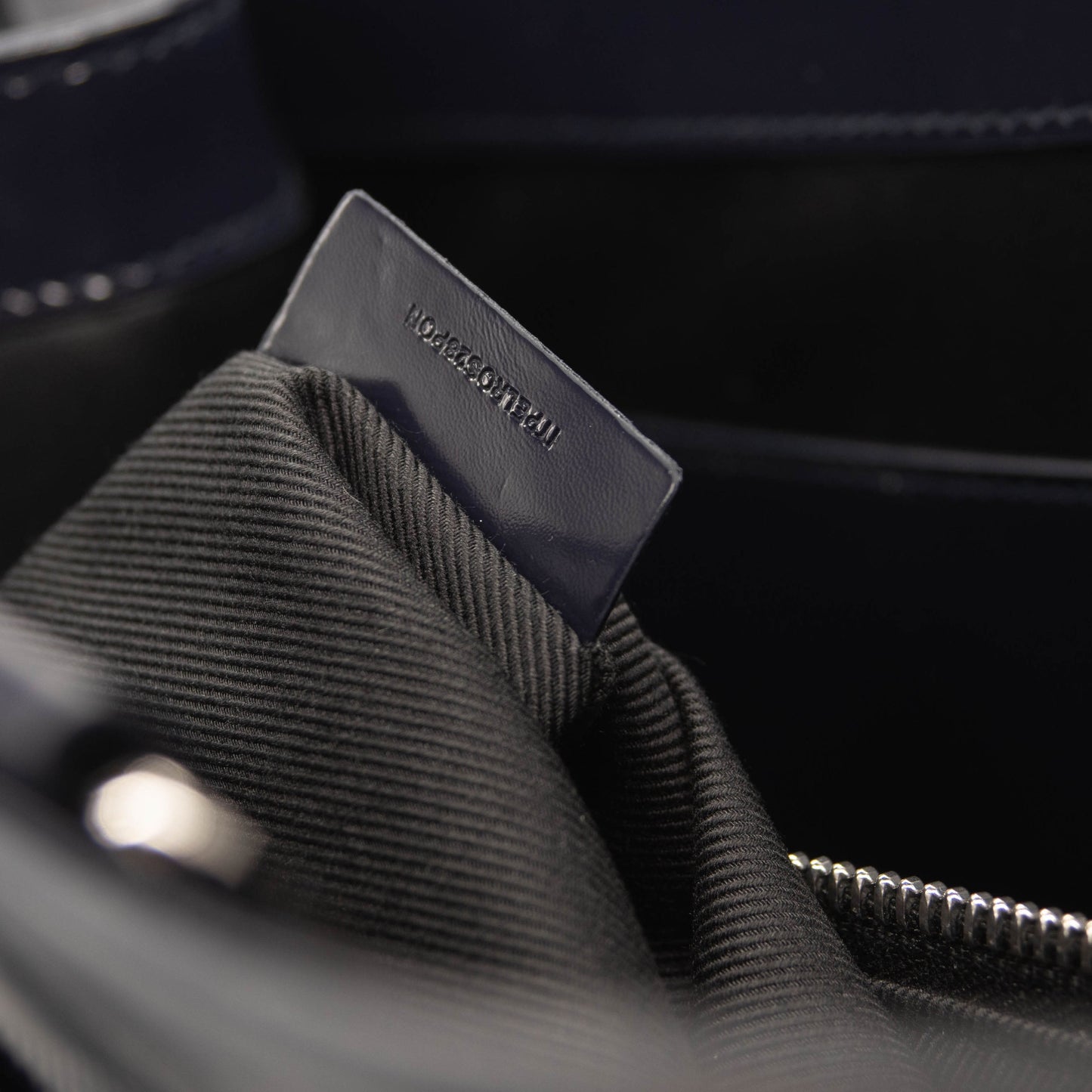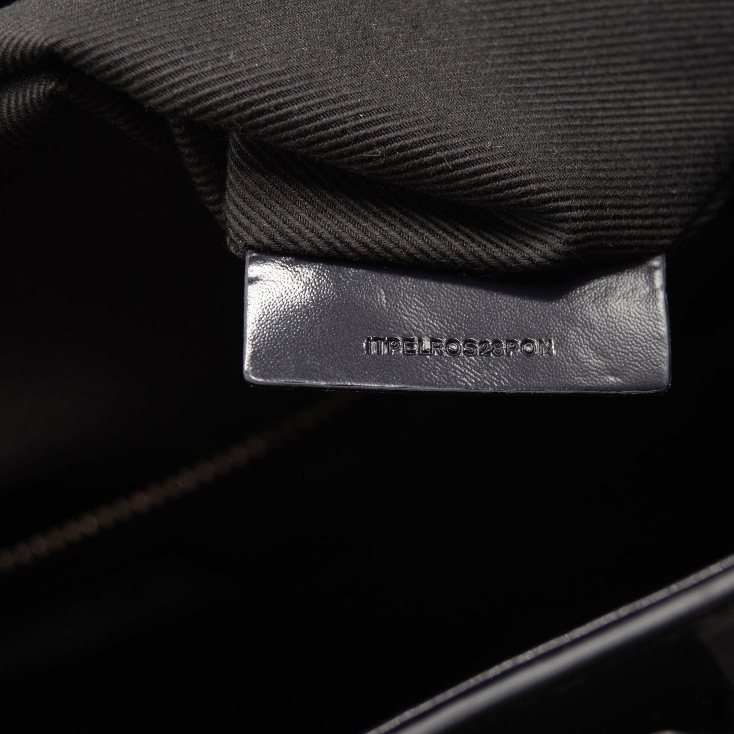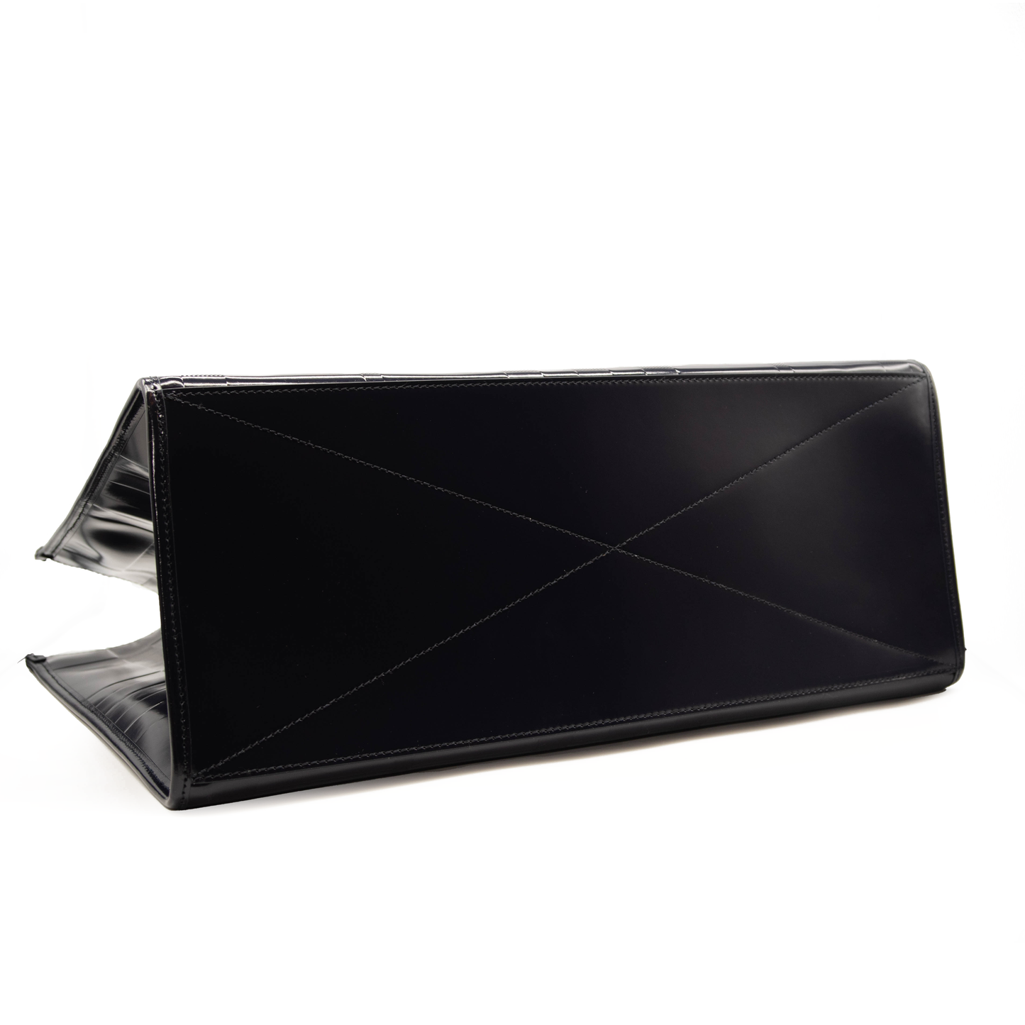 Burberry Denny Embossed Check Leather Tote Blue Patent Dark Charcoal
