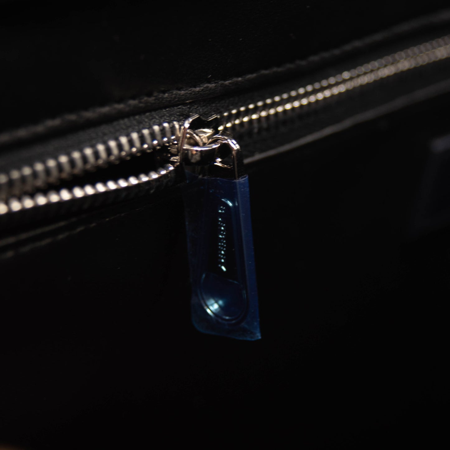 NEW Burberry Denny Embossed Check Leather Tote Blue Patent Dark Charcoal