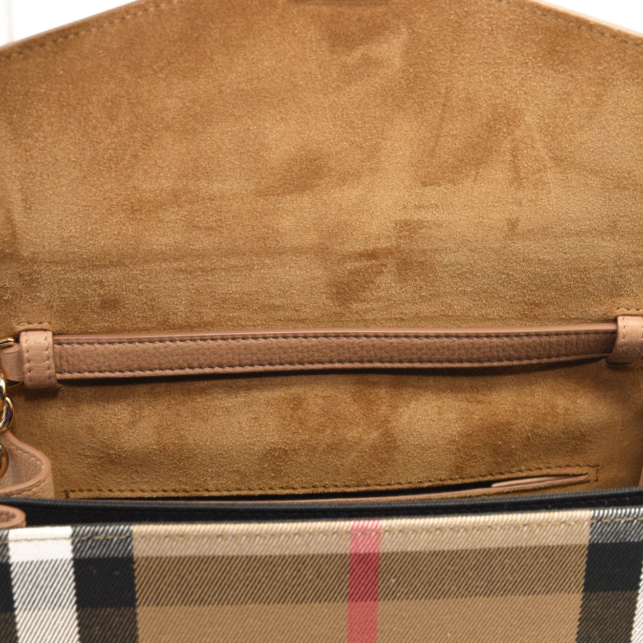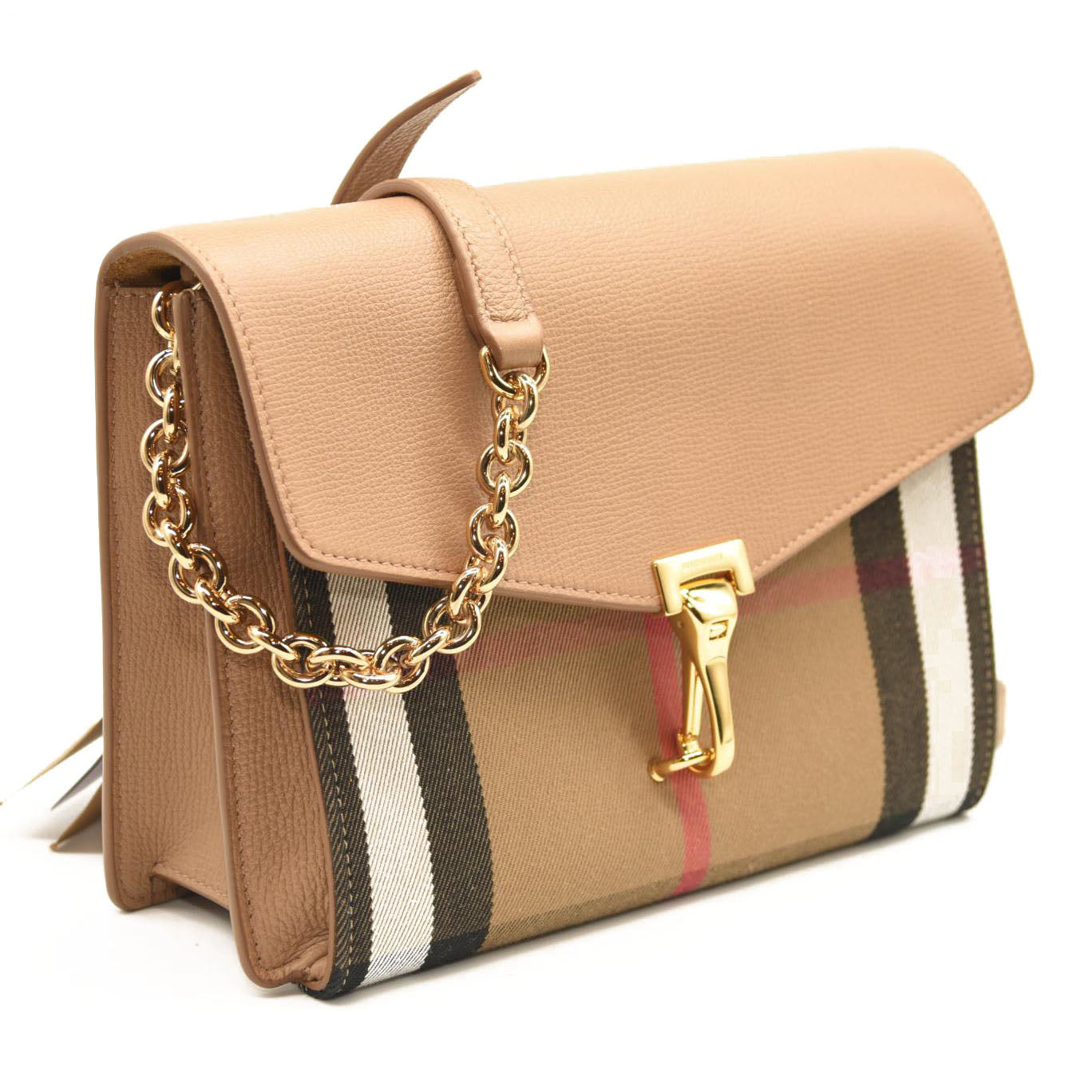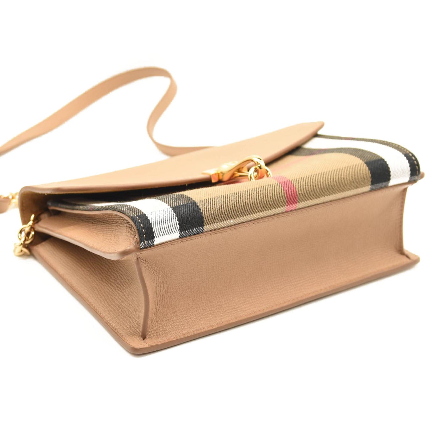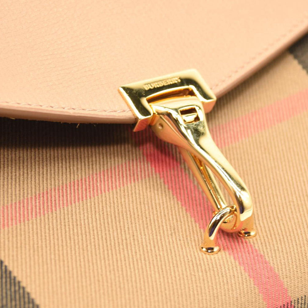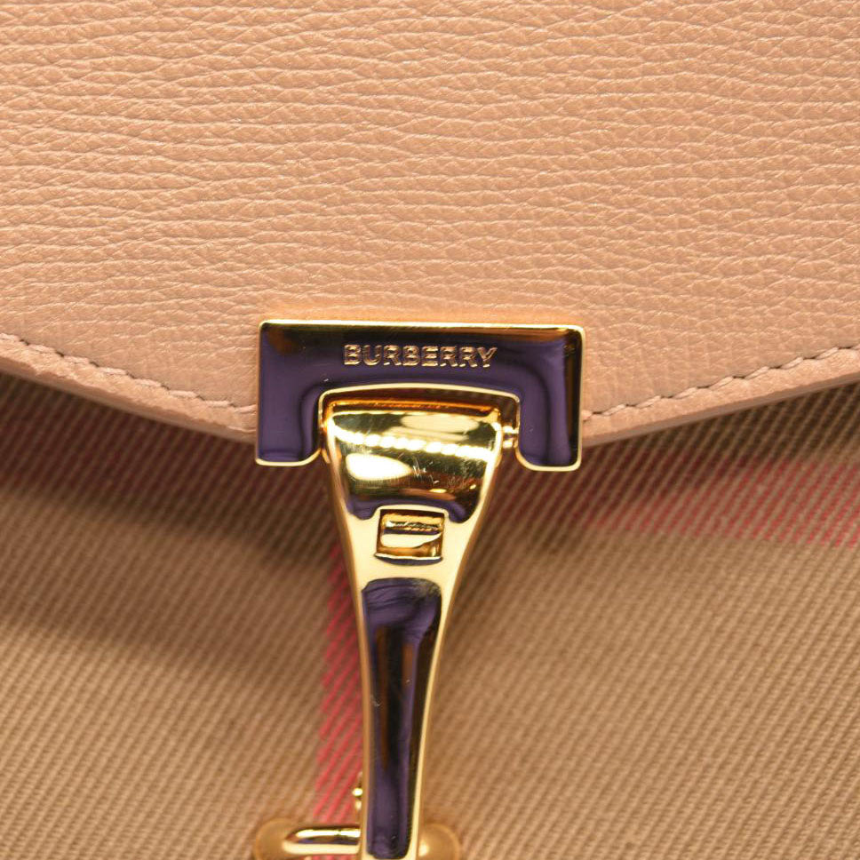 BURBERRY Derby Calfskin House Check Small Macken Crossbody Bag Tan