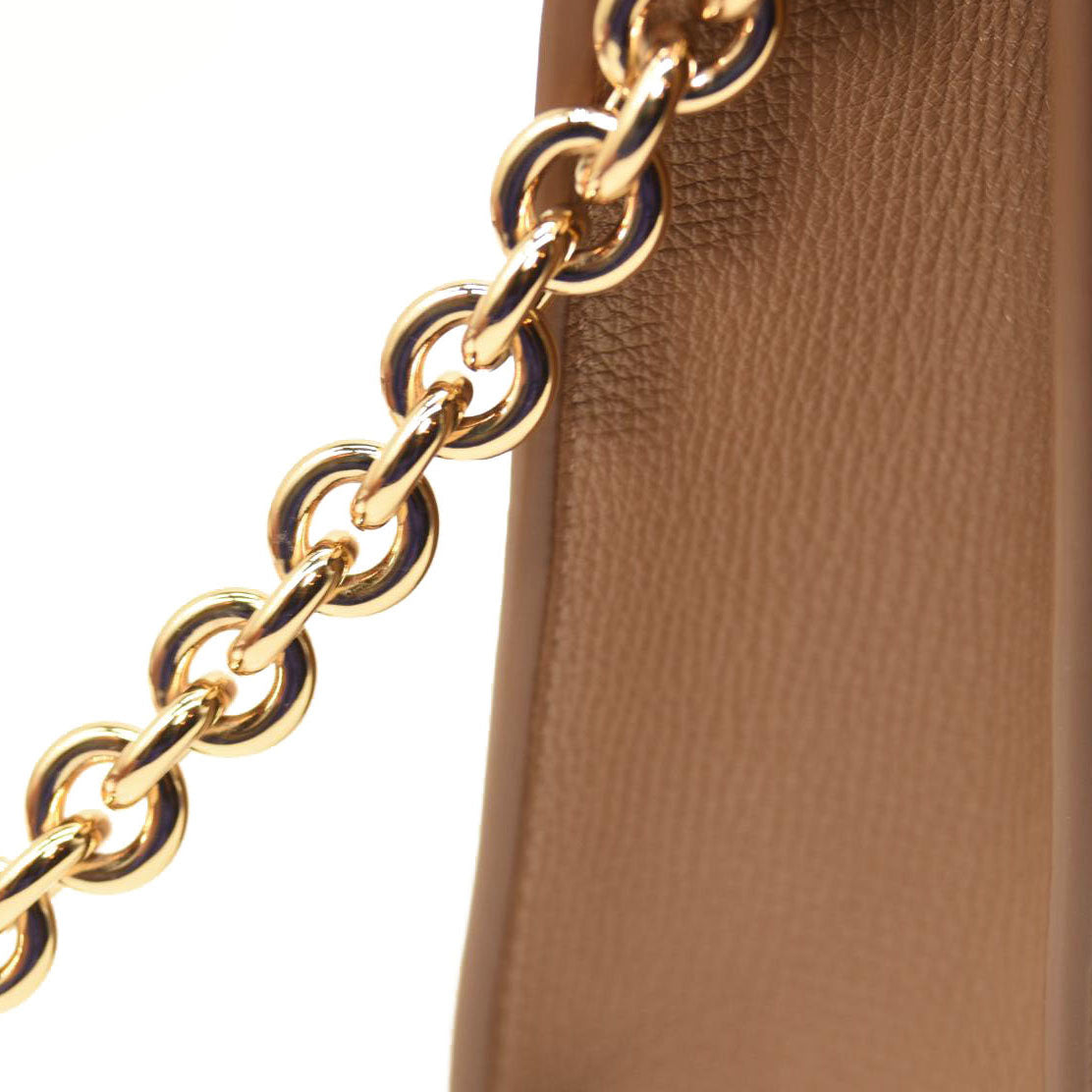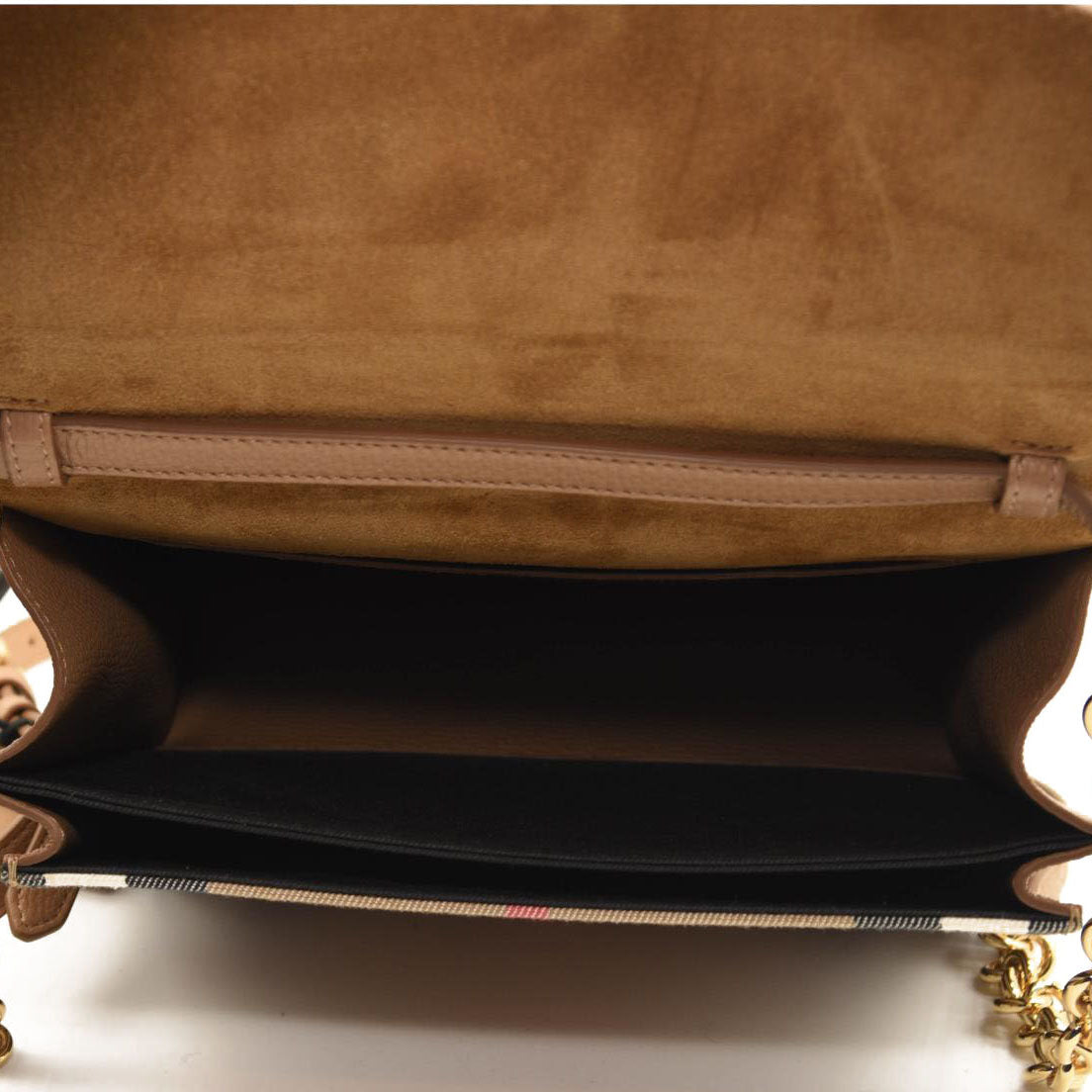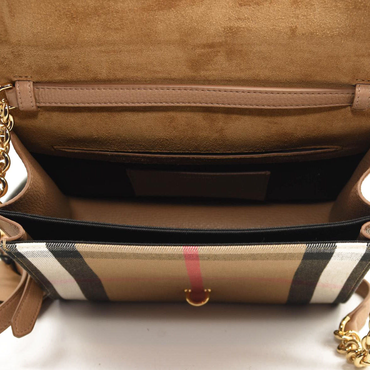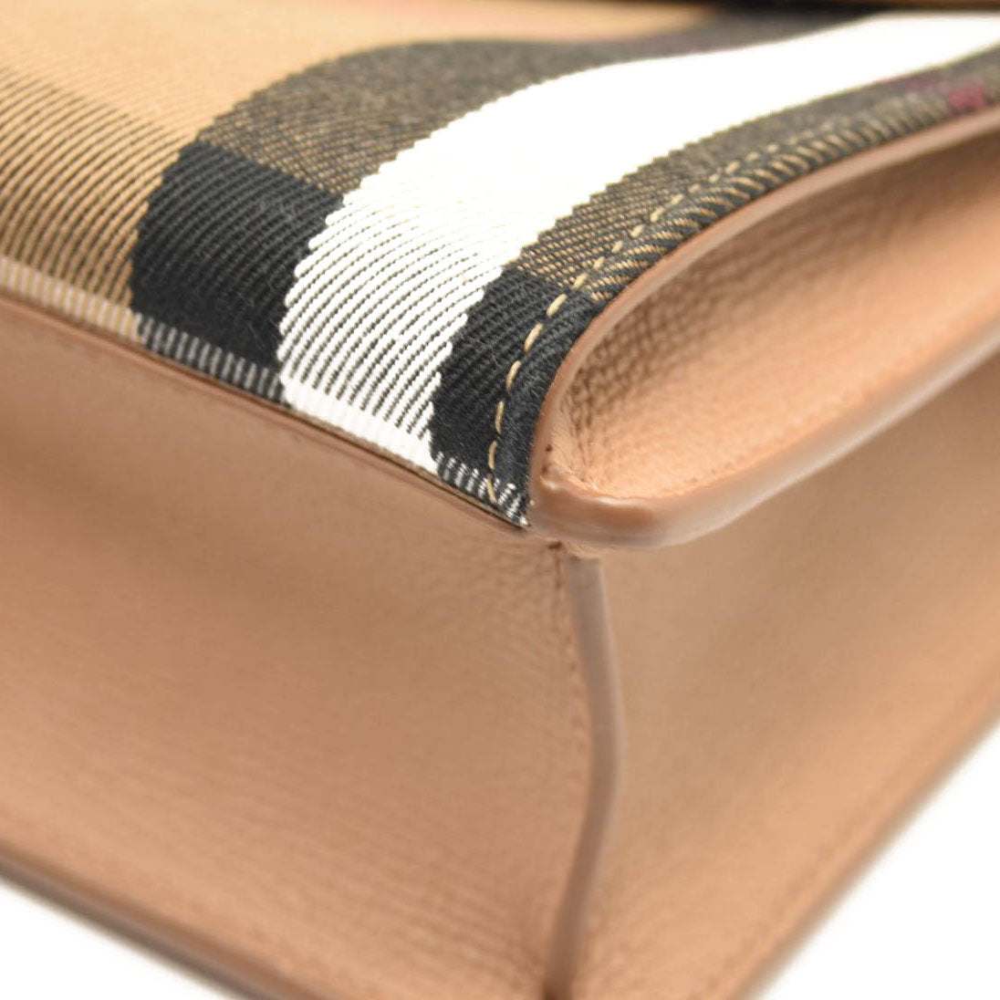BURBERRY Derby Calfskin House Check Small Macken Crossbody Bag Tan