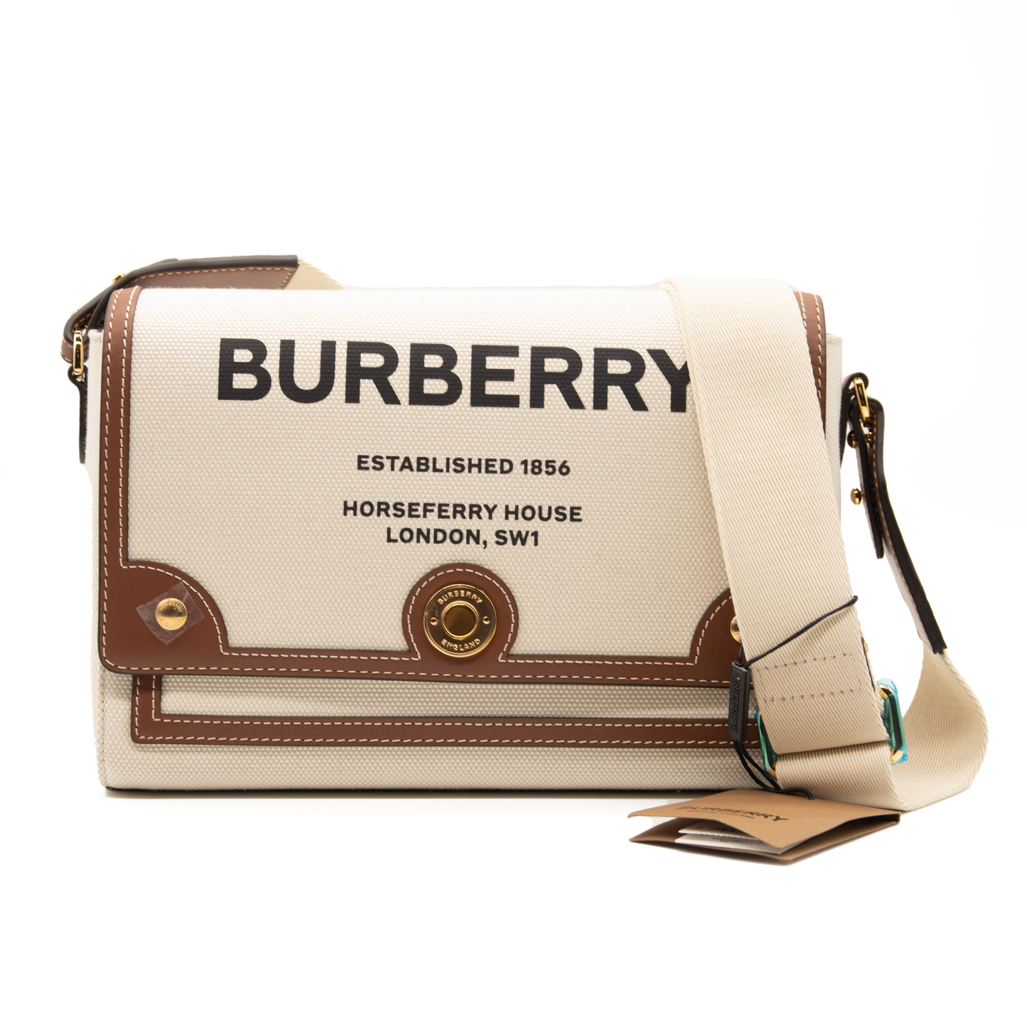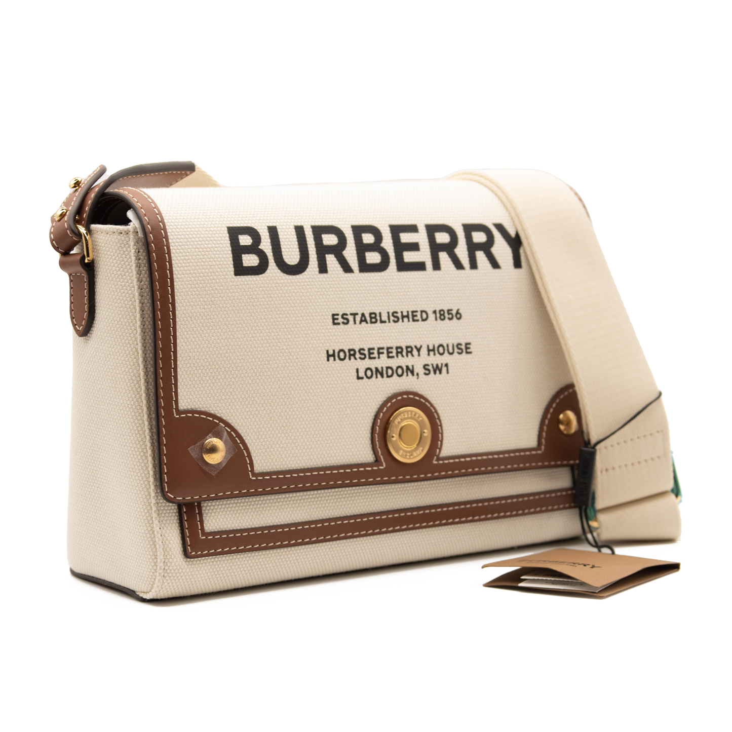 NEW Burberry Horseferry Print Canvas Note Bag in Natural/tan
