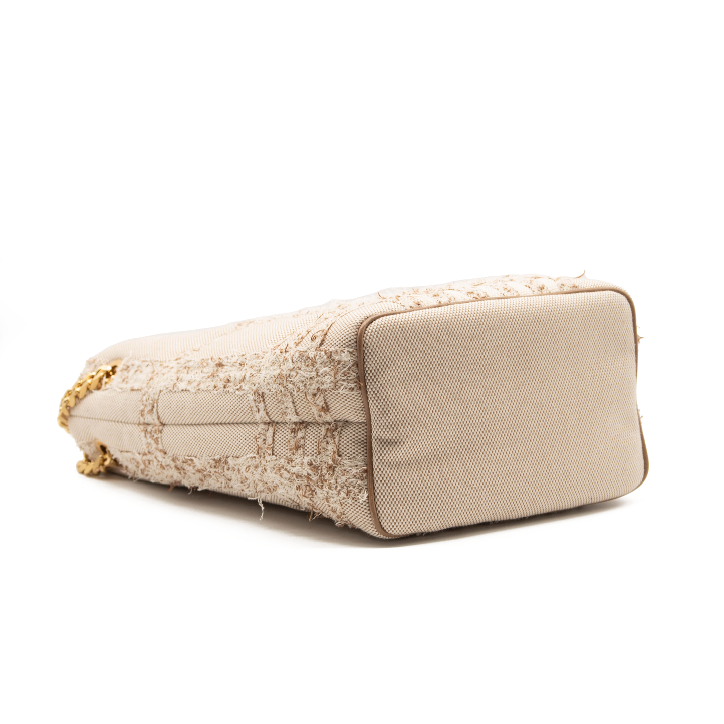 Textural needle-punch embroidery creates Burberry's iconic check on this compact bucket bag polished with a gleaming curb-link chain strap and TB monogram.