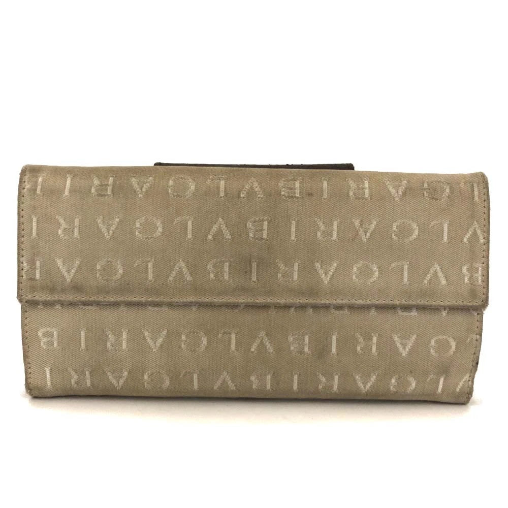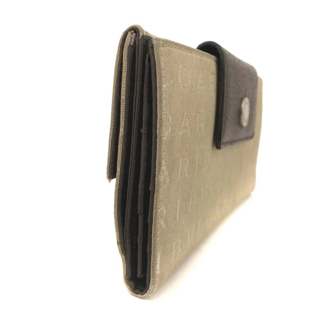 BVLGARI Classico Logo Mania Canvas Leather Bifold Long Wallet