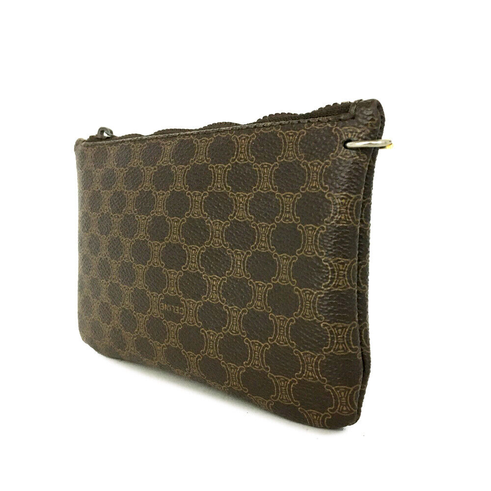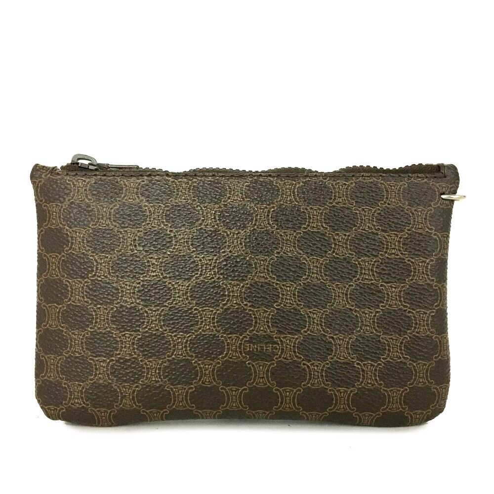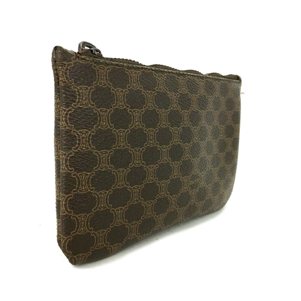 This is an authentic CELINE Macadam PVC Cosmetic Pouch Bag in Brown. This elegantly simple cosmetic pouch is versatile and functional, and is crafted of textured coated canvas in black and brown. This case features a polished gold top zipper that opens to a brown fabric interior. Tote just the essentials in this pouch for day or evening with the innovative style of Celine!