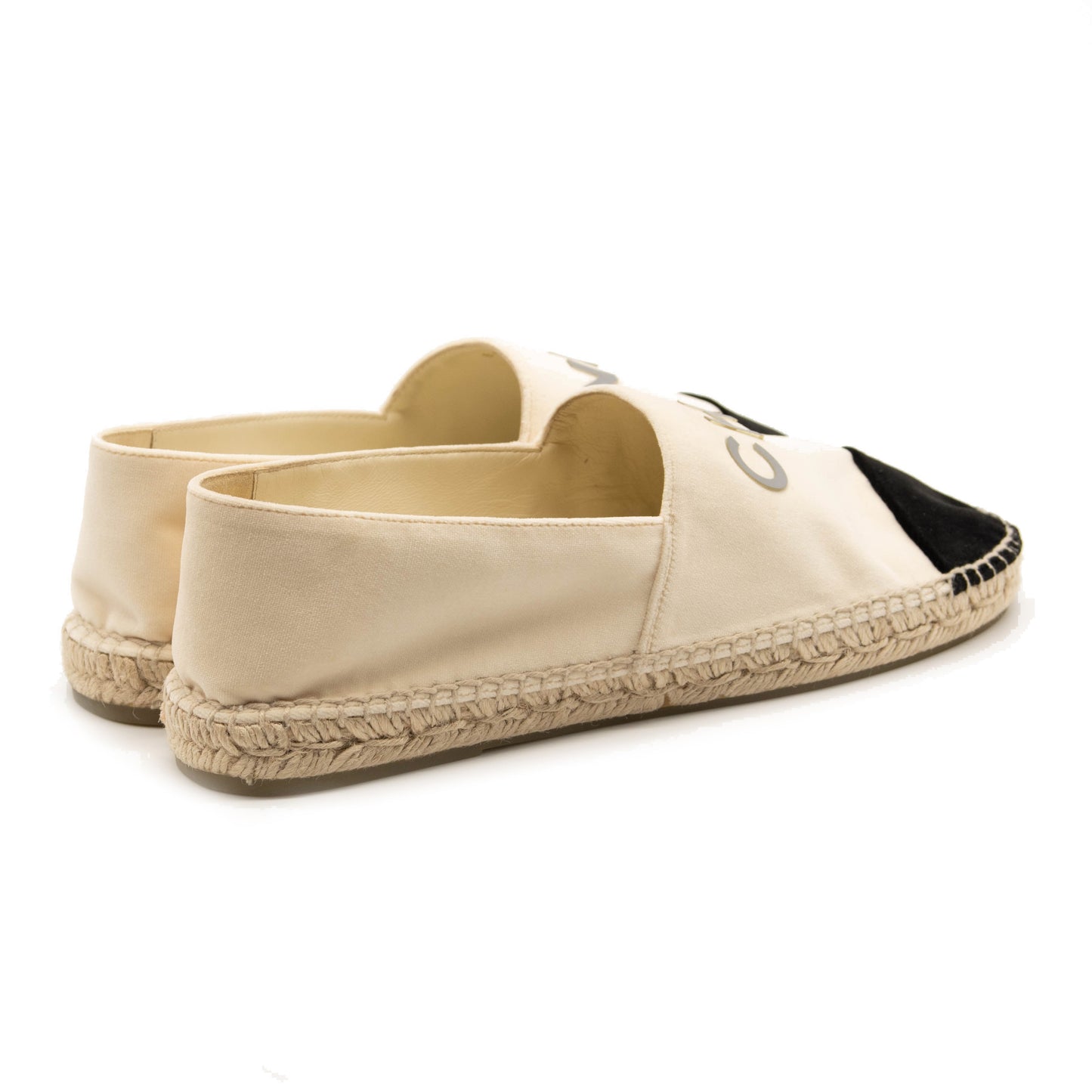 Chanel Beige Velvet Logo Espadrilles Black Mules/Slides