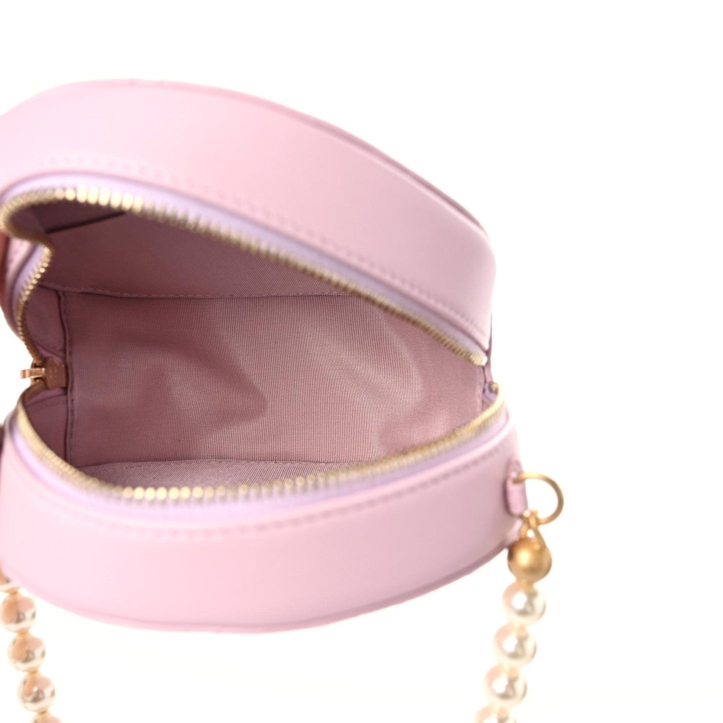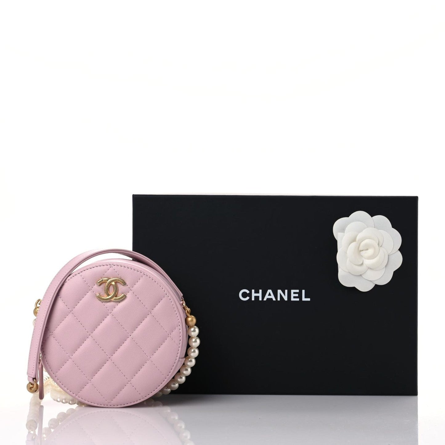 Chanel Calfskin Quilted Pearl Round Clutch With Chain Light Pink