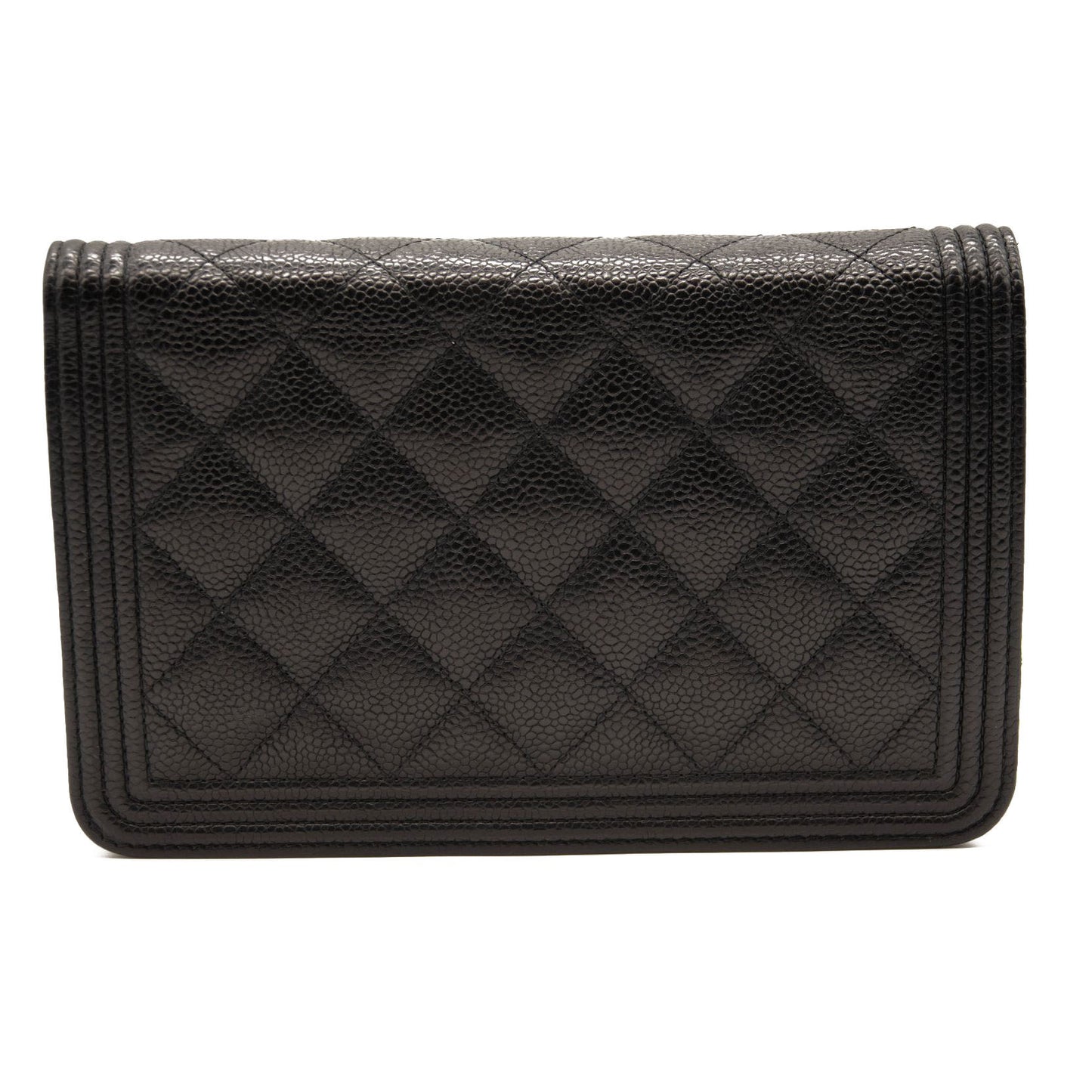 Chanel Caviar Quilted Boy Wallet On Chain WOC Black