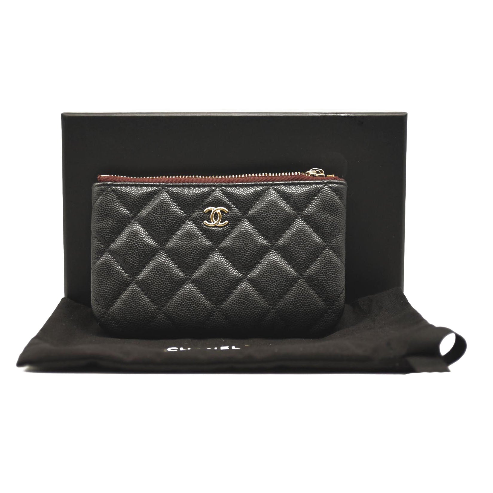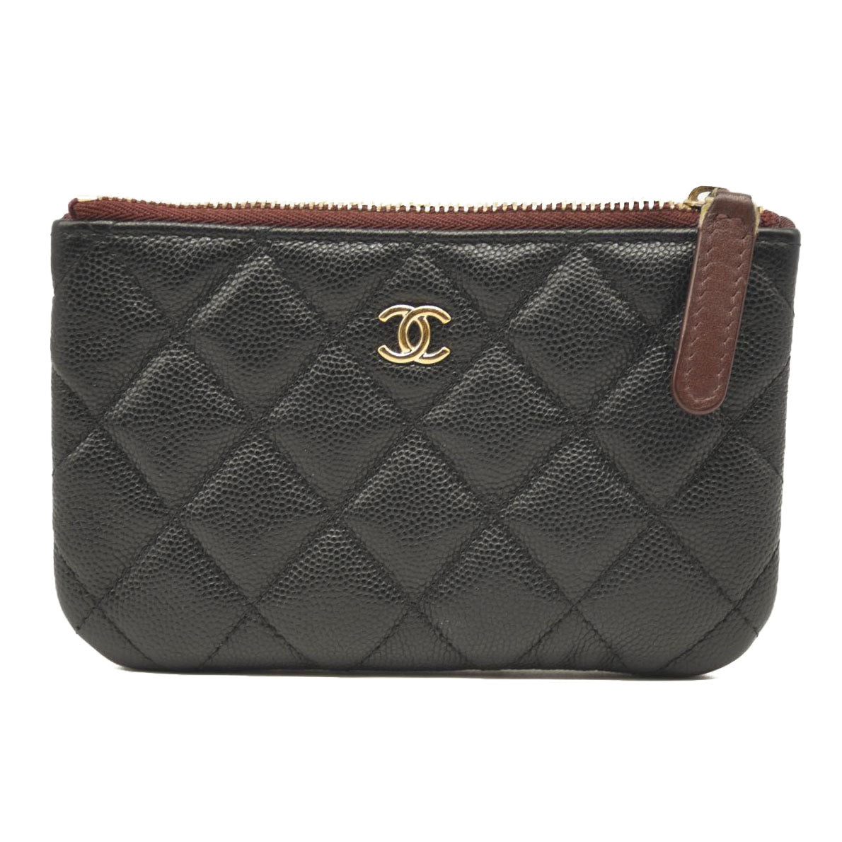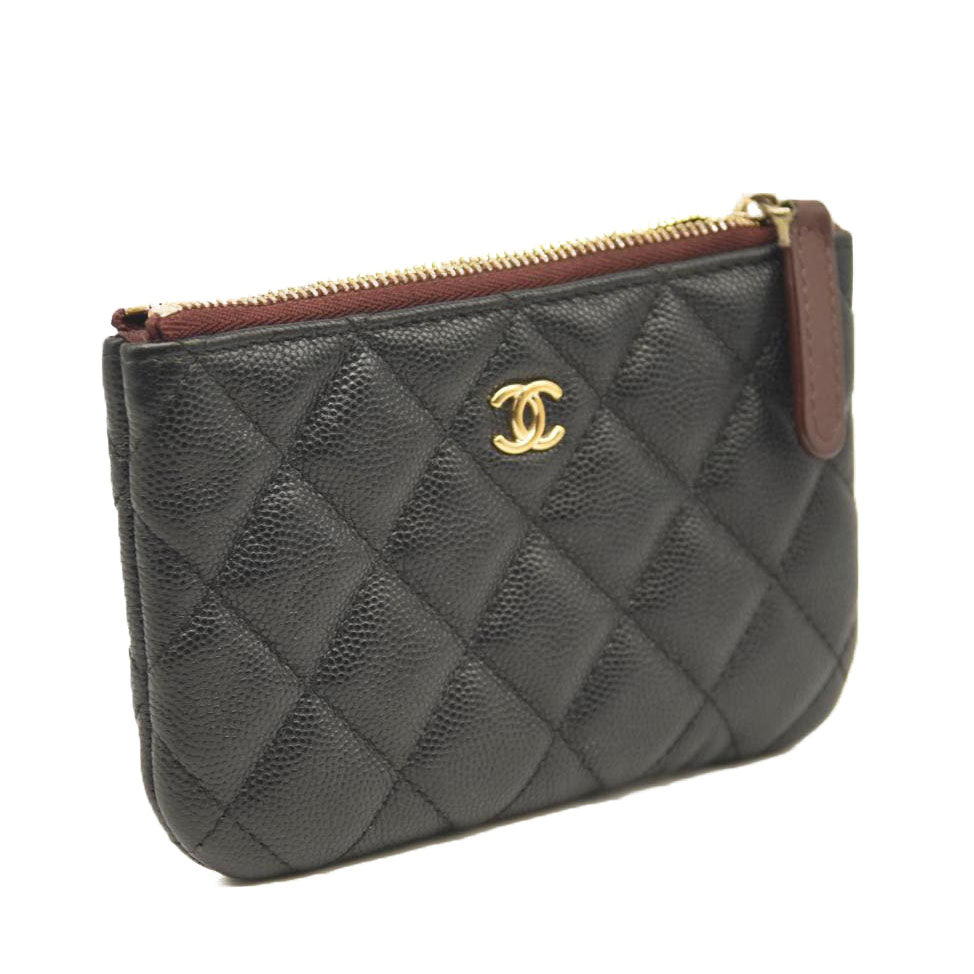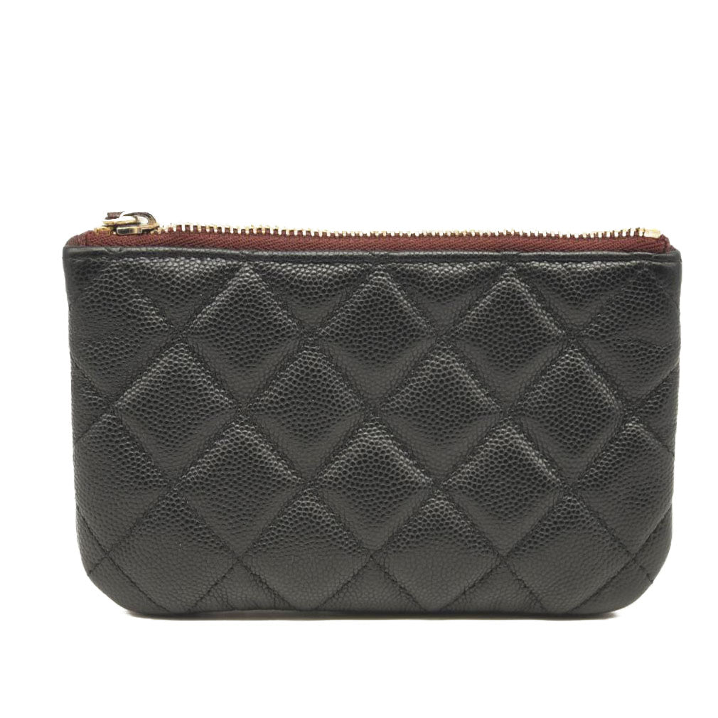 This is an authentic CHANEL Caviar Quilted Small Pouch in Black. This ultra-stylish key case is crafted of luxurious diamond quilted caviar leather in black. This small O-case features a dark red top zipper that opens to a compact burgundy nylon interior, suitable for keys, lipstick or other small necessities, from Chanel!