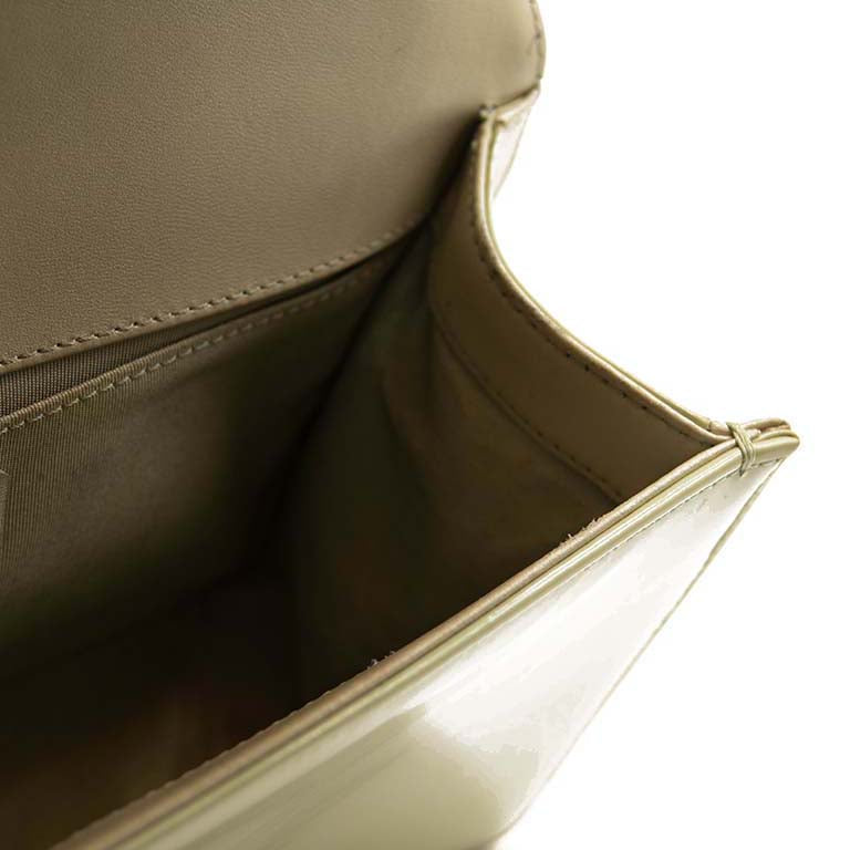 CHANEL Chanel Mint Green Quilted Patent Leather Medium Boy Flap Bag