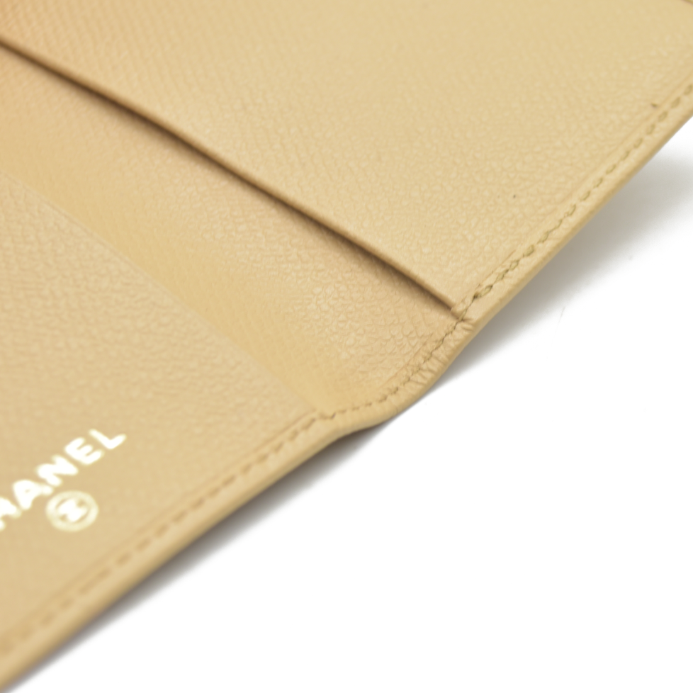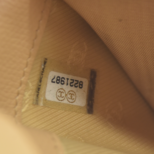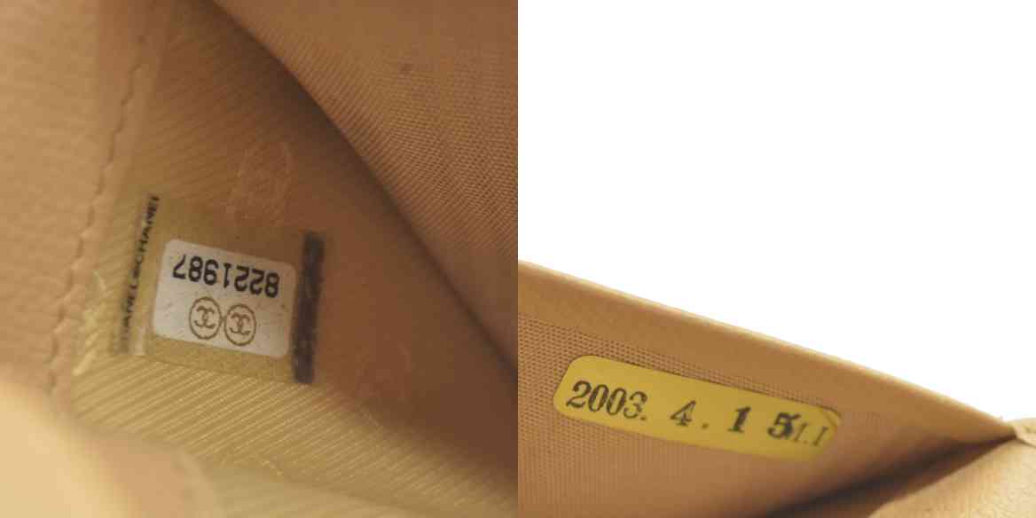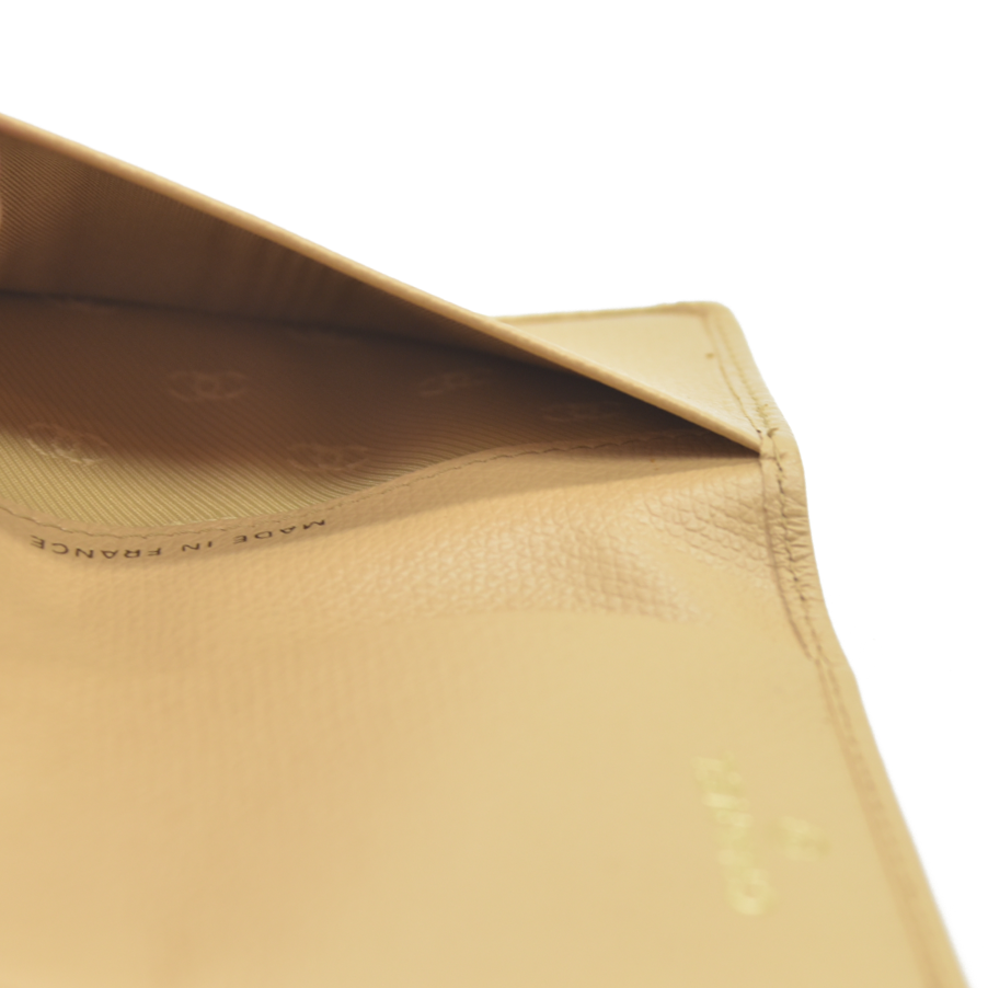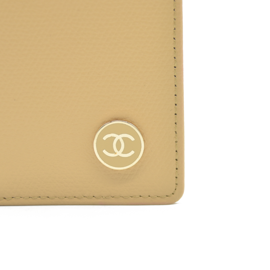 AUCTION CHANEL Coco Button Leather Card Case Holder Short Purse Beige
