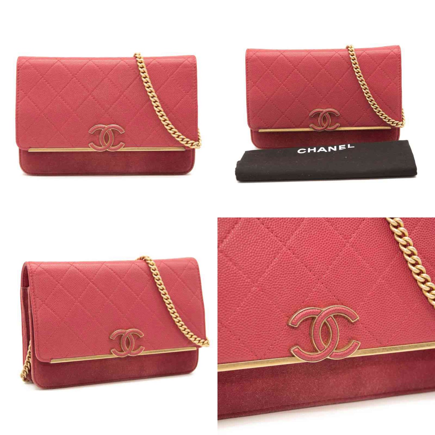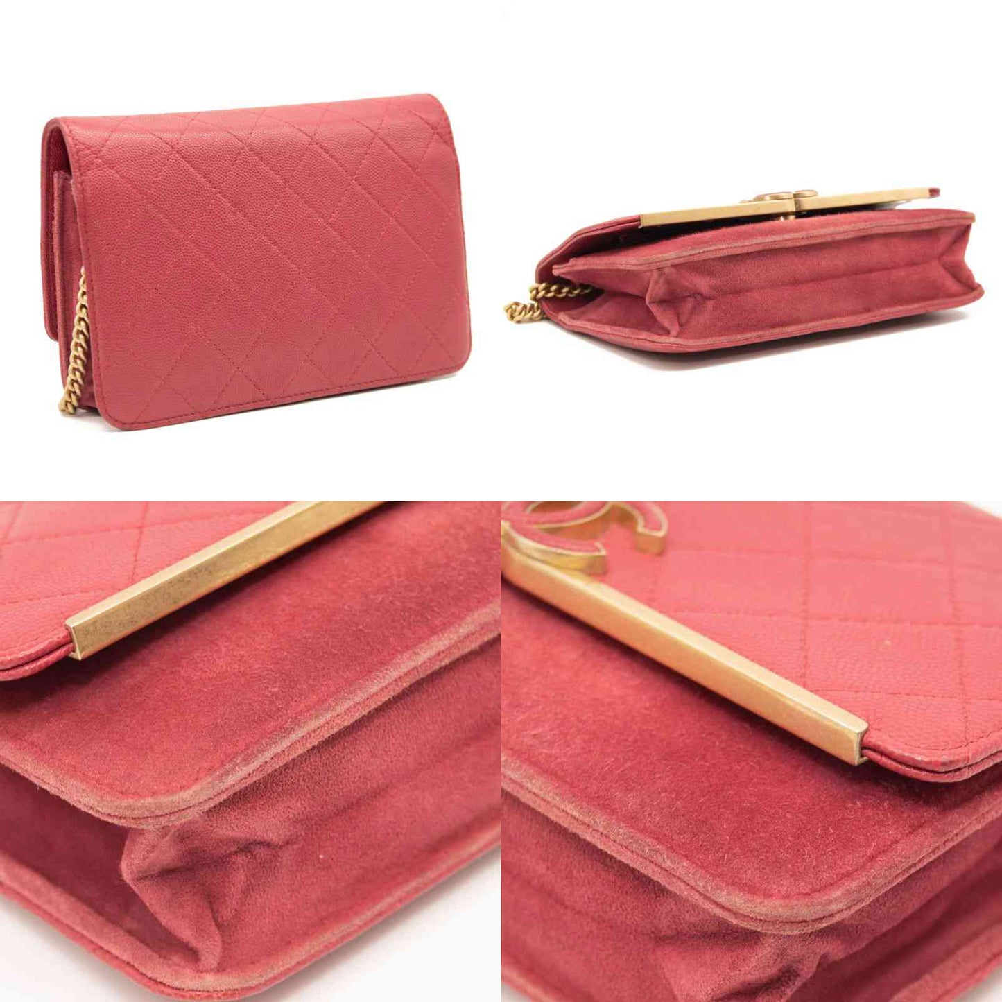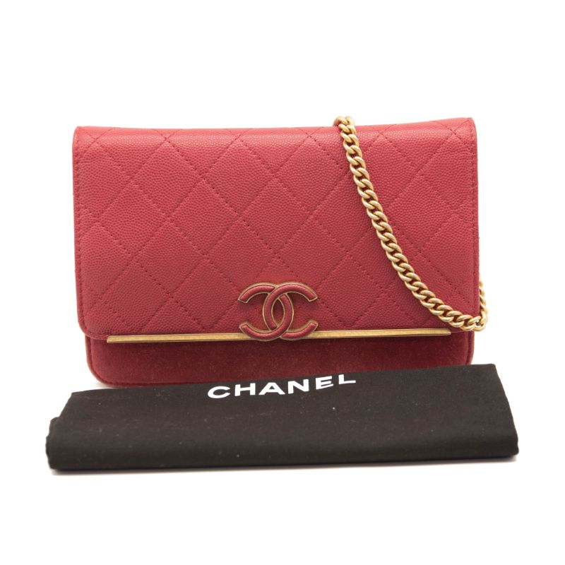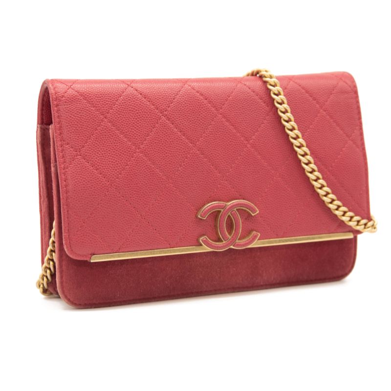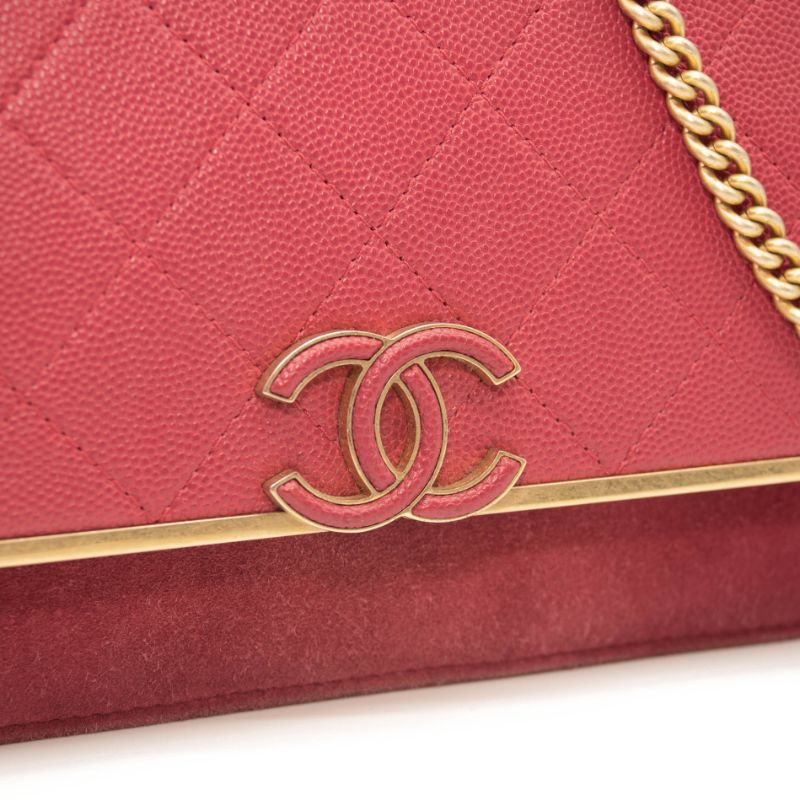 Chanel Grained Calfskin Stitched Small WOC CC Flap Bag Pink
