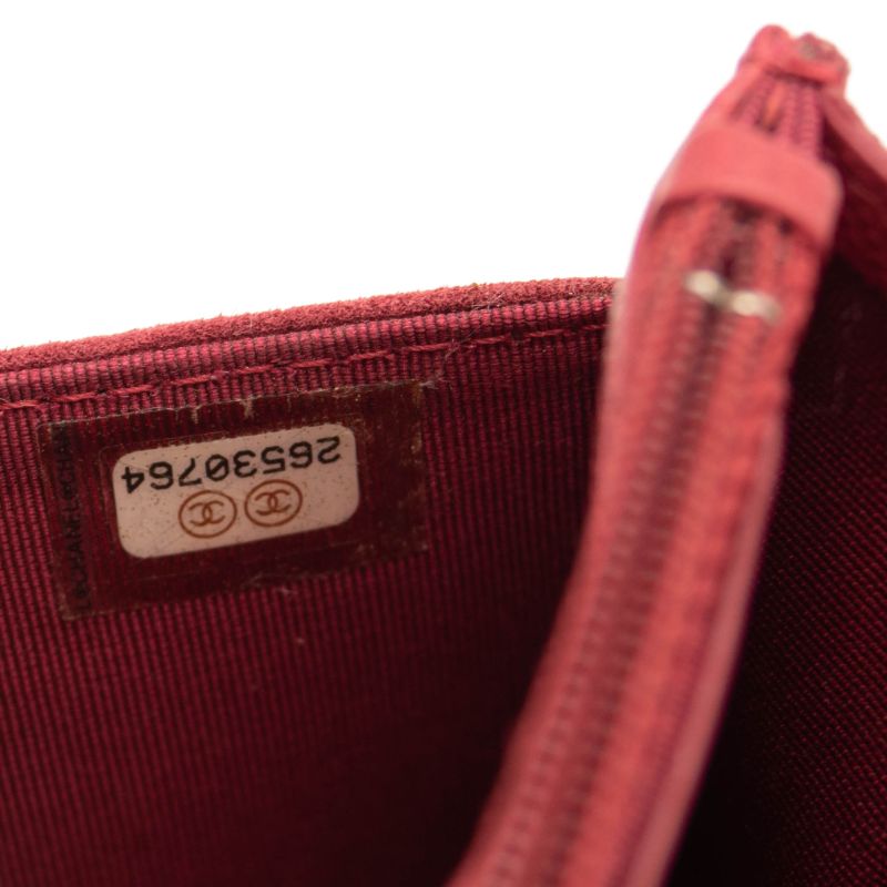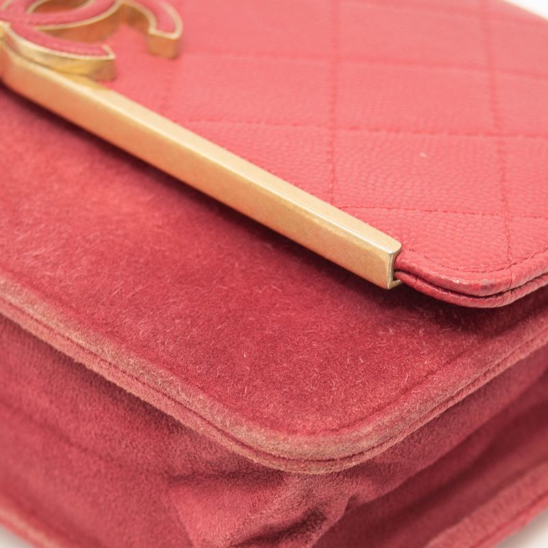 This is an authentic CHANEL Grained Calfskin Stitched Small Enamel CC Flap Bag in Pink. This stylish handbag is crafted of luxurious calfskin leather and suede in pink. The refined bag features diamond stitched pattern with suede material along bag. It has a aged gold chain strap and leather shoulder pad. The frontal enamel CC logo magnetic plate opens to a dark pink fabric interior with 3 tri-fold compartments. This bag is ideal for any occasion with the timeless style, from Chanel.