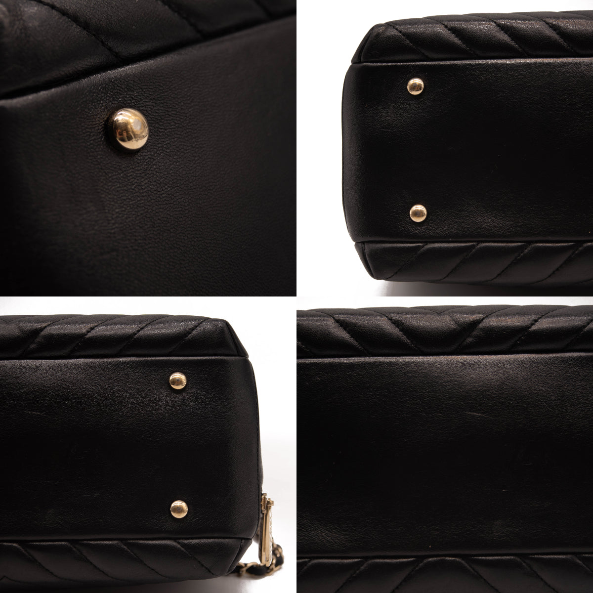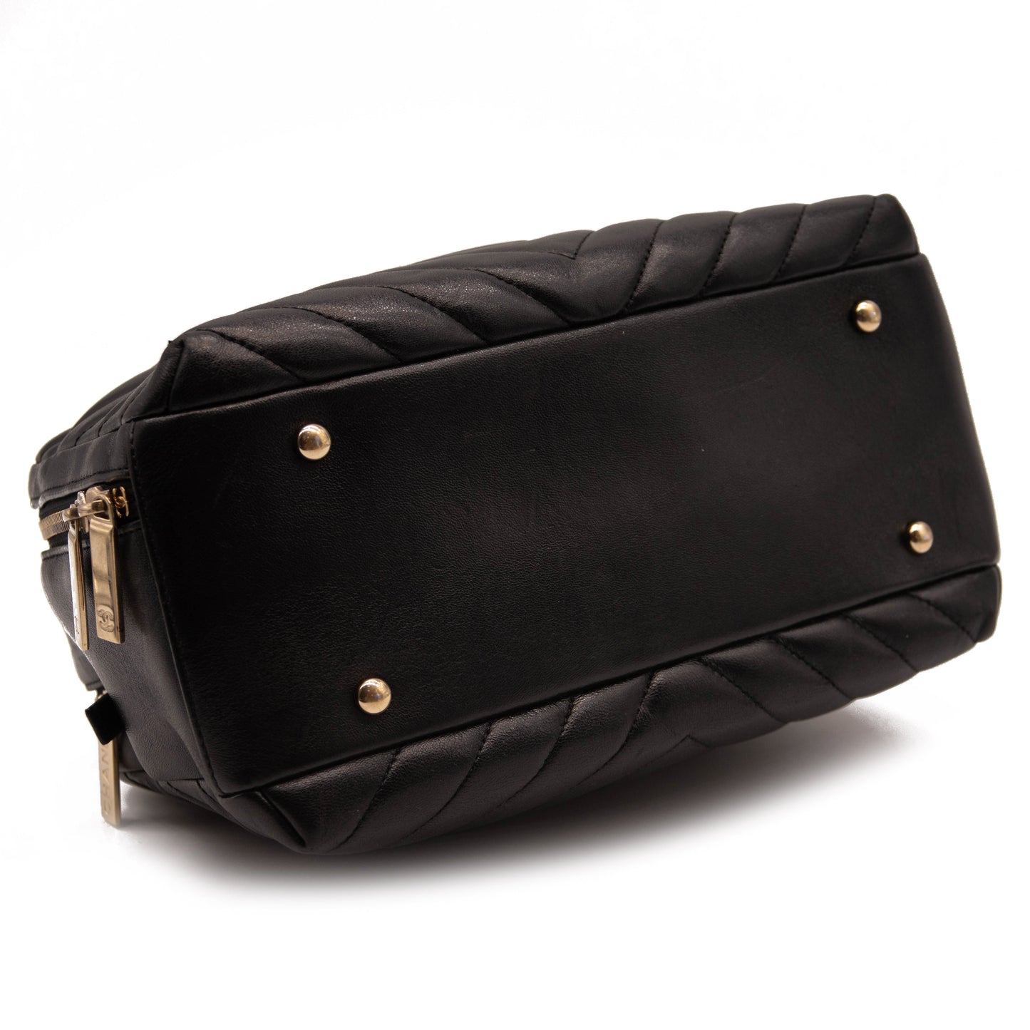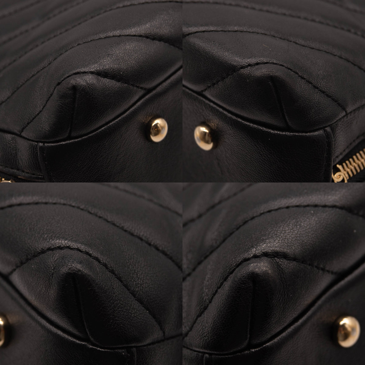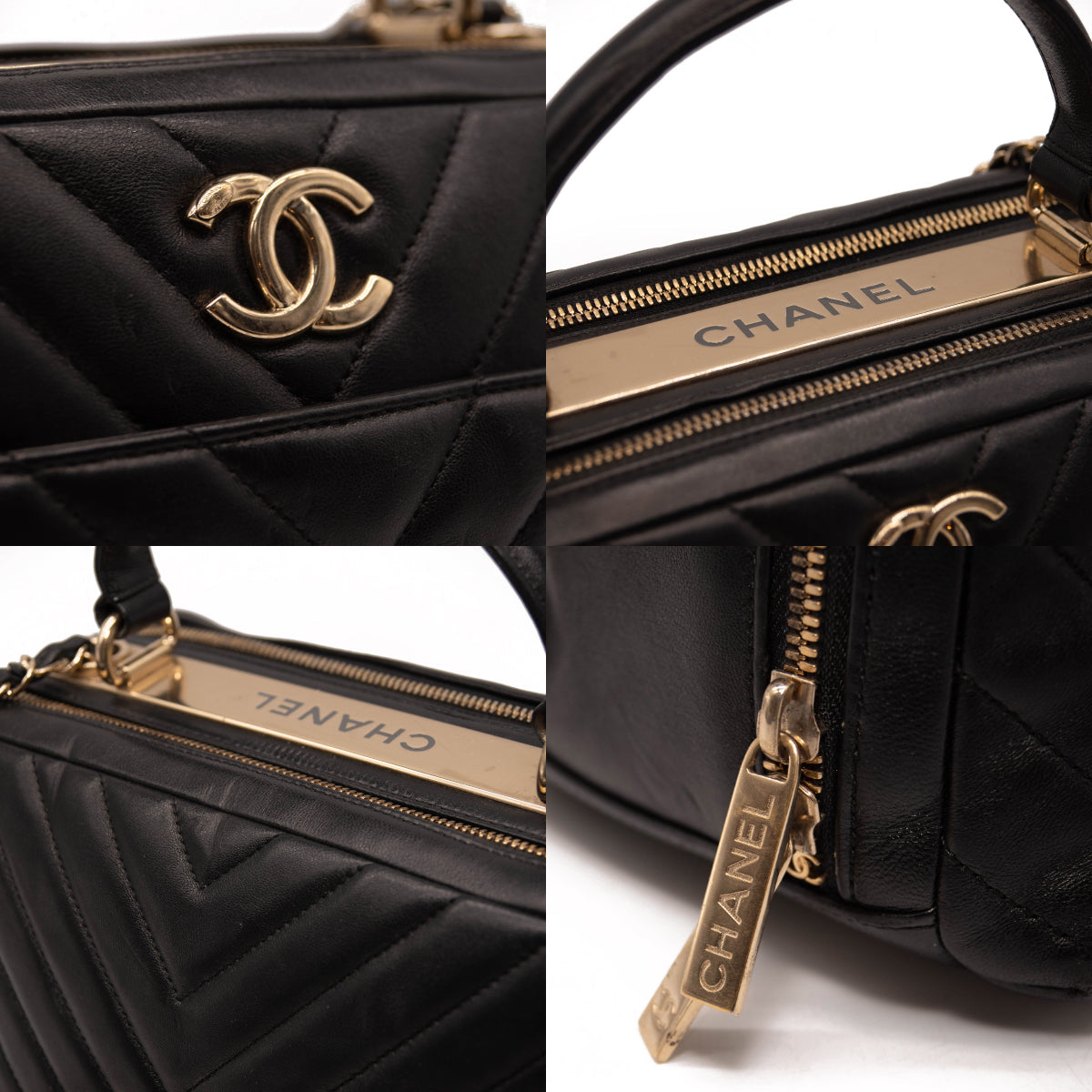 Chanel Lambskin Chevron Quilted Small Trendy CC Bowling Bag Black with Gold Hardware