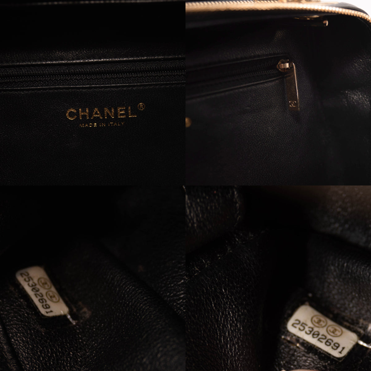 This is an authentic CHANEL Lambskin Quilted Small Trendy CC Bowling Bag in Black. This stylish bowler style tote is crafted of diamond quilted leather in black. The refined bag features a reinforced leather top handle with polished gold links, a gold chain leather threaded shoulder strap with a shoulder pad, a full wrap around facing zipper and a standard zipper towards the rear. These open to a black leather interior with a zipper and patch pocket. This bad is ideal for any occasion with the timeless style, from Chanel.