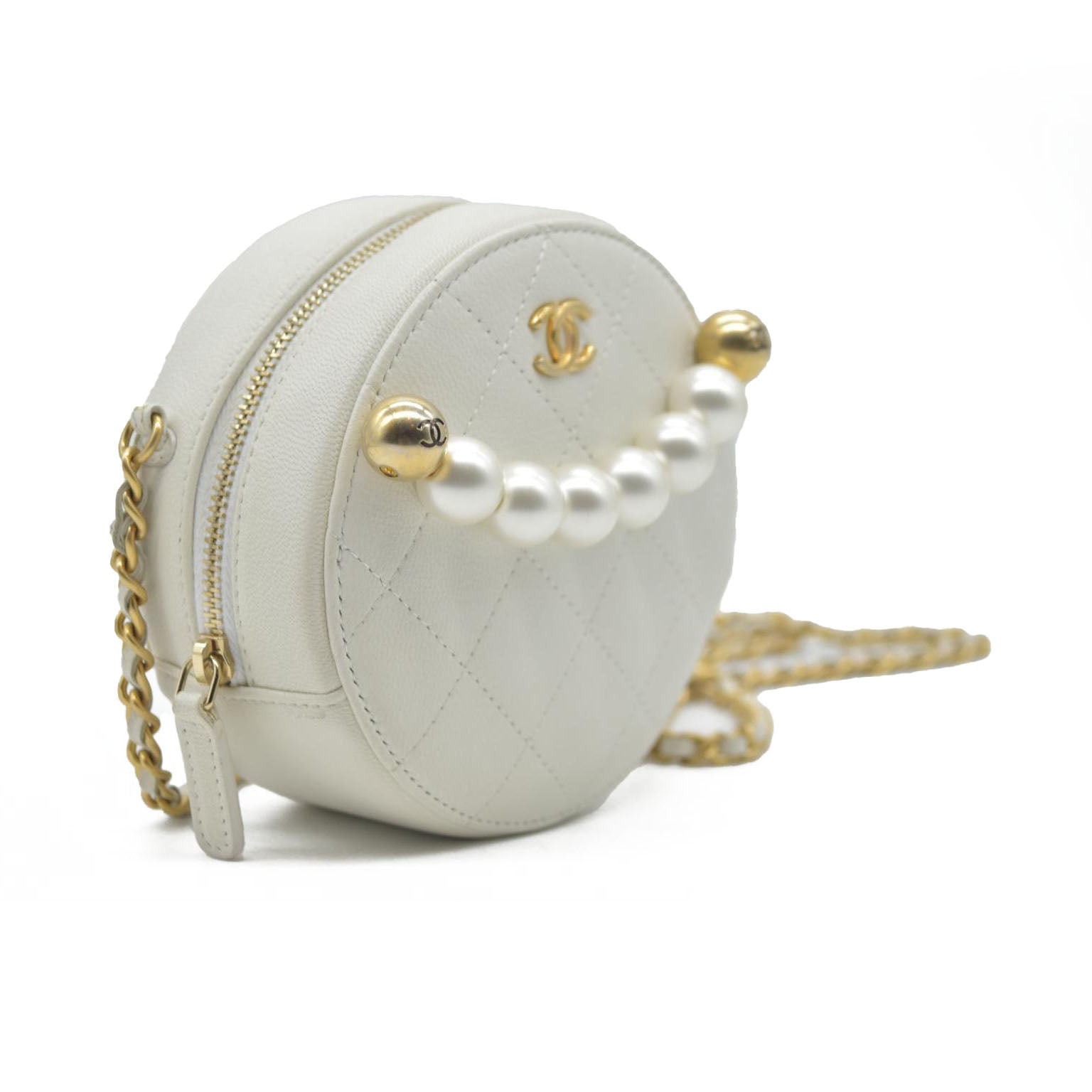 $3100 Chanel Lambskin Quilted Pearl Round Clutch With Chain White 29 2020