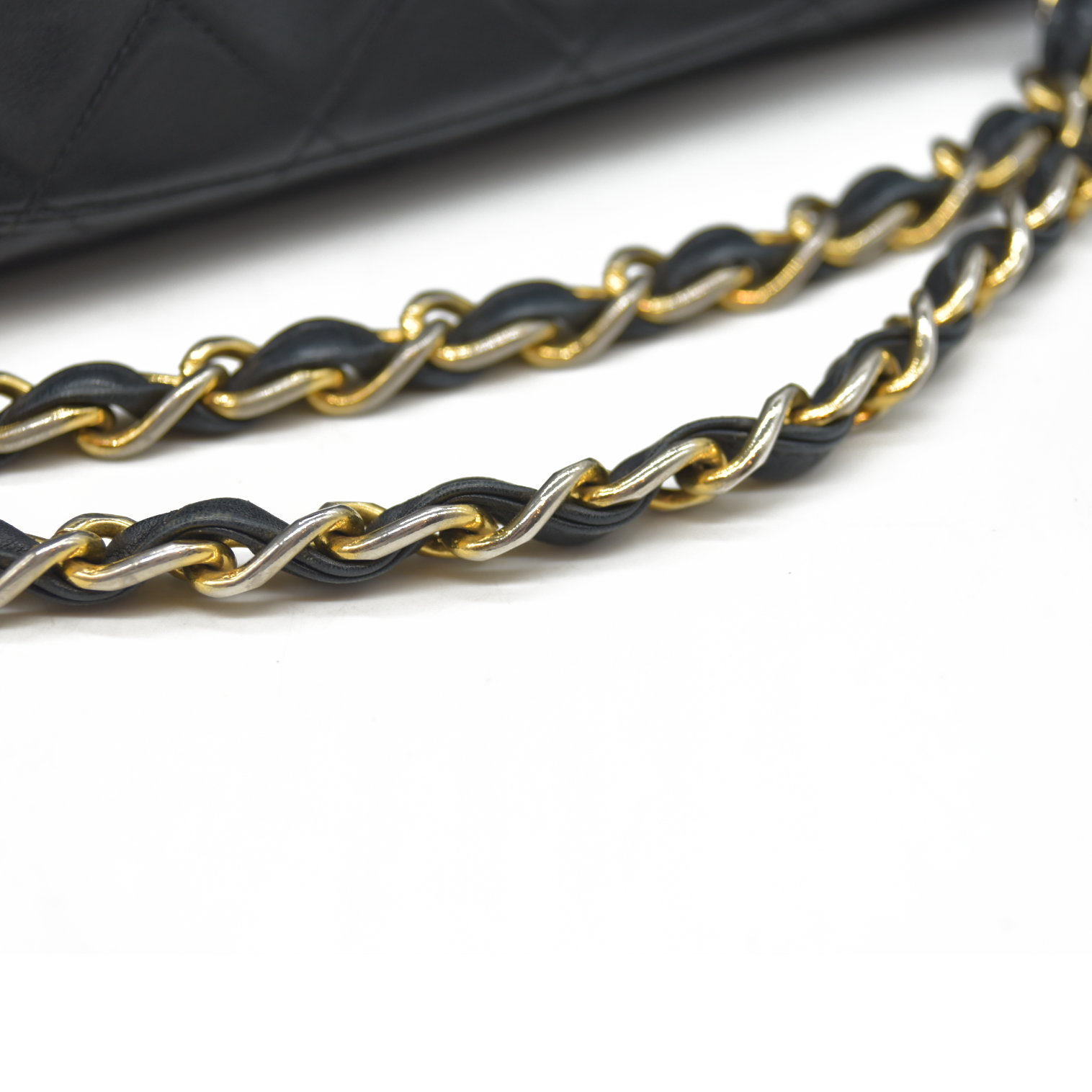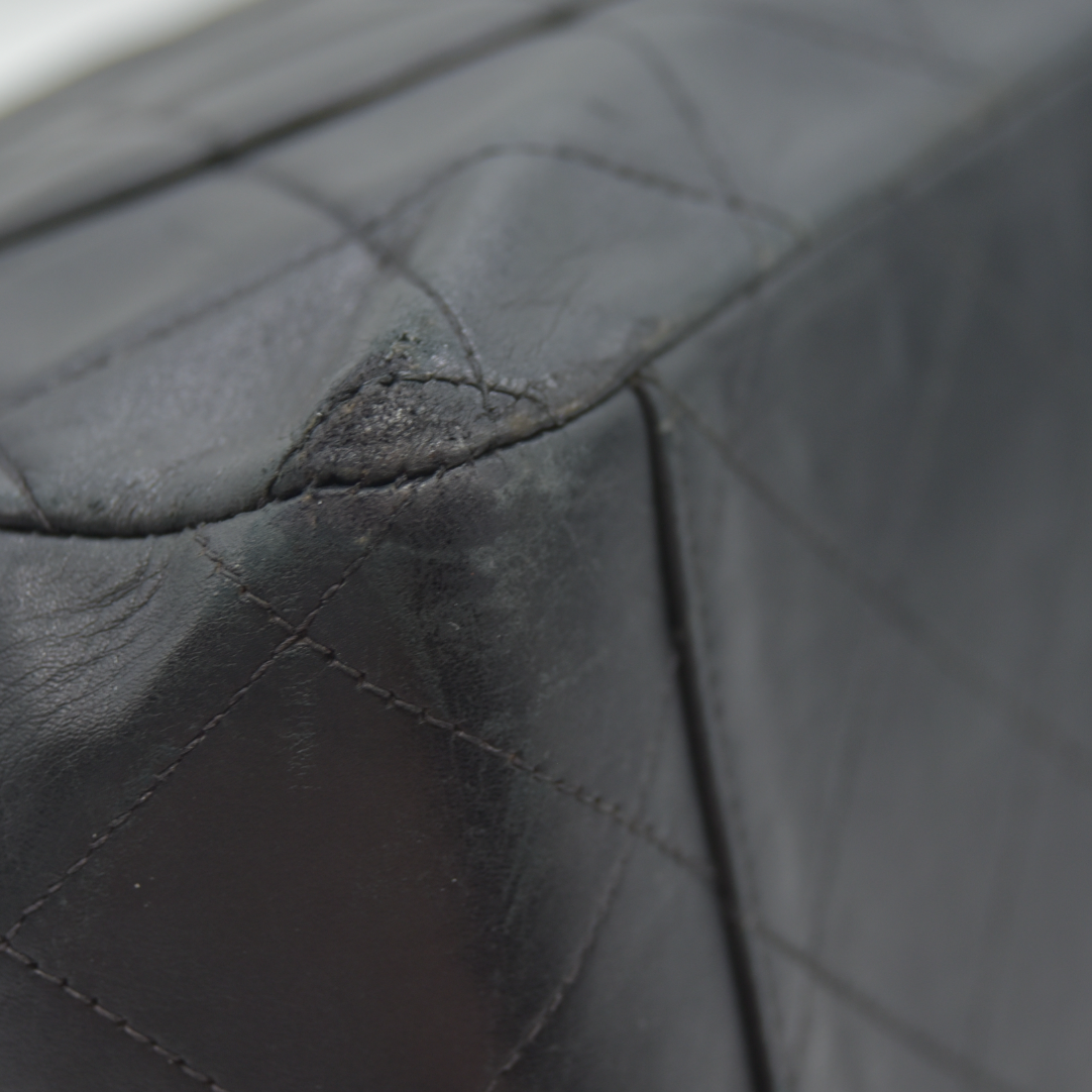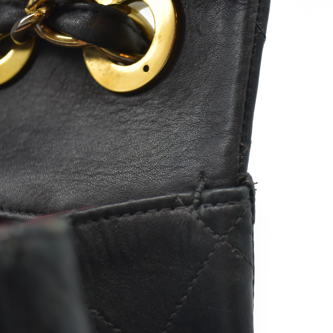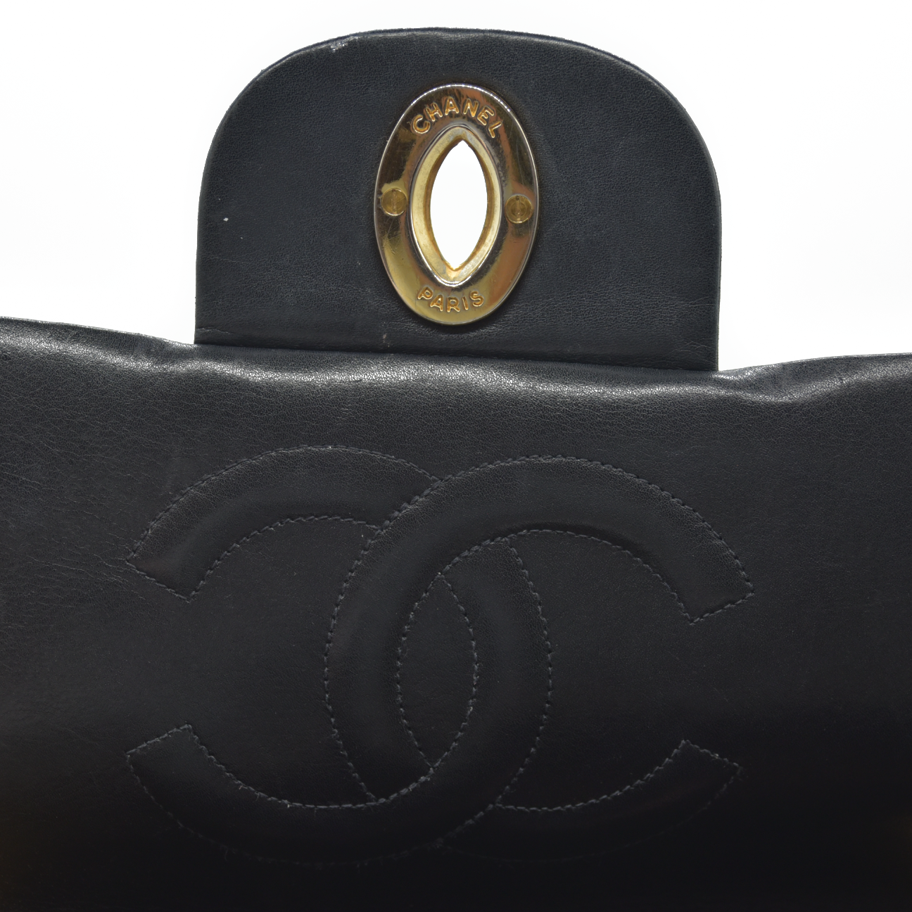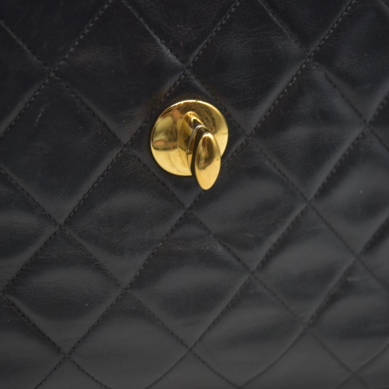 CHANEL Lambskin Large Deca Matelassé Single Flap Shoulder Bag Black