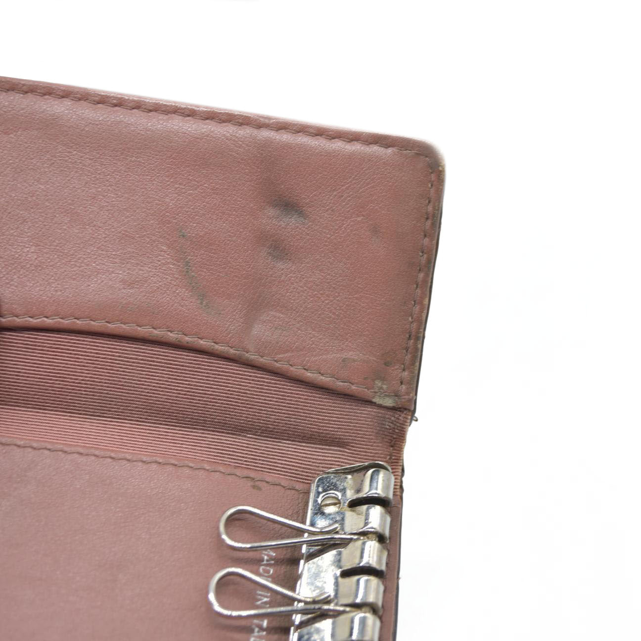 Discoloration, edge wear, marks, color loss, scratches on hardware, corner wear