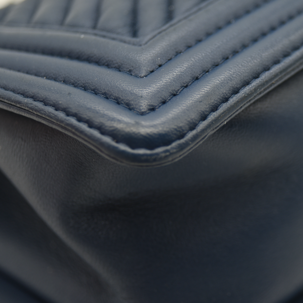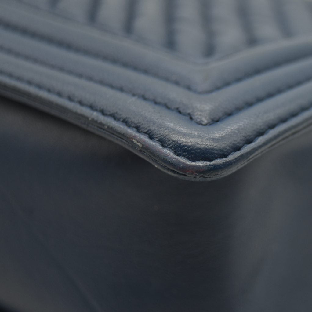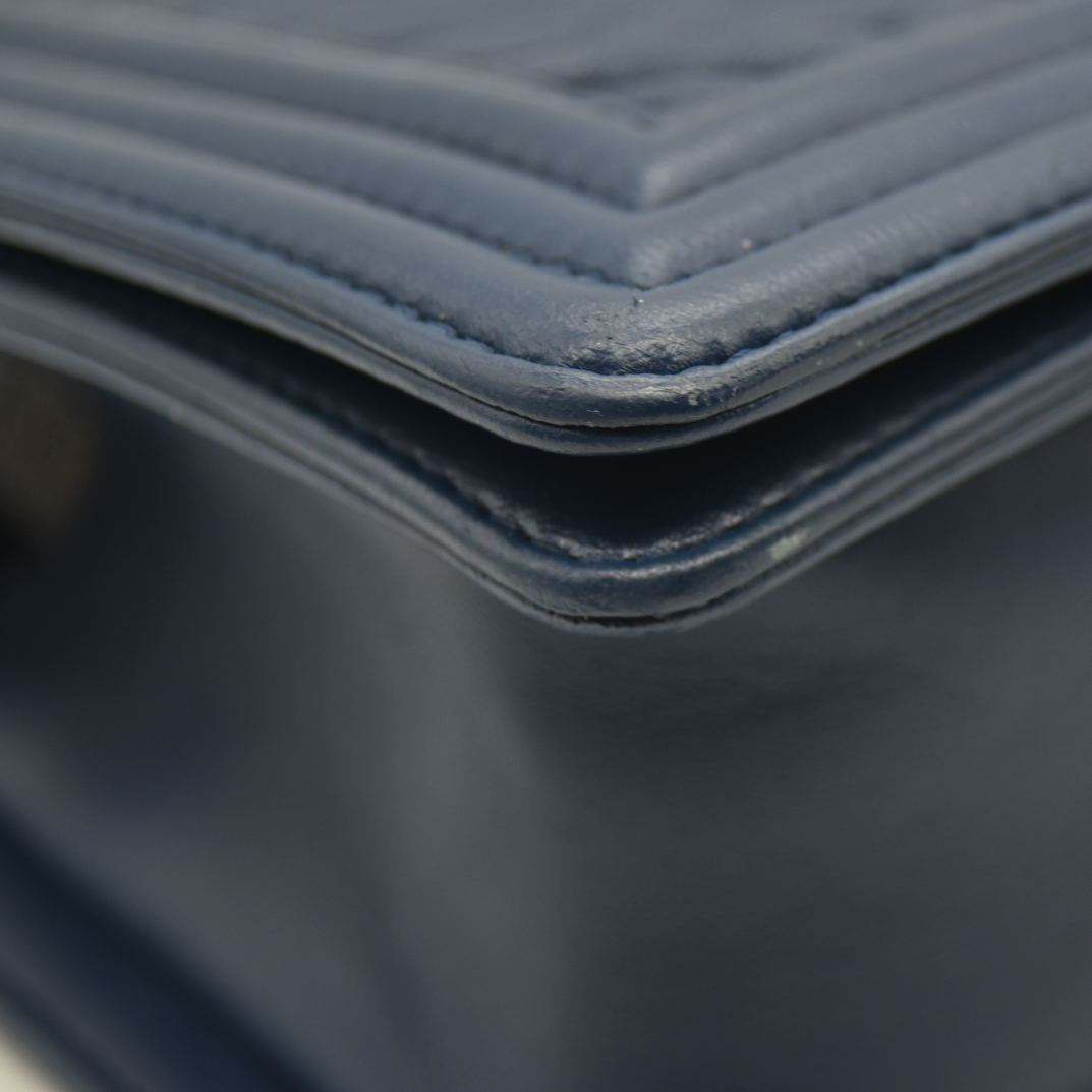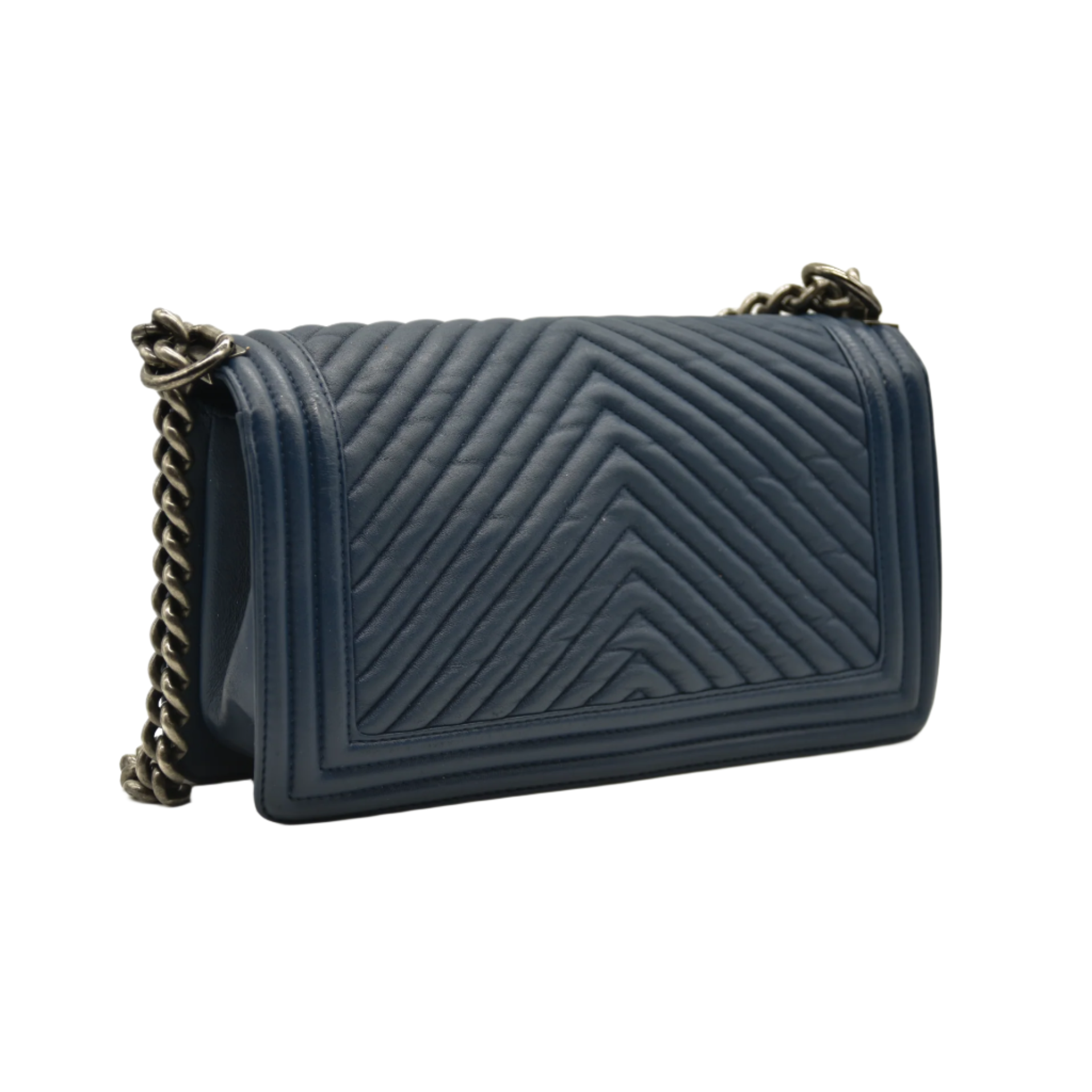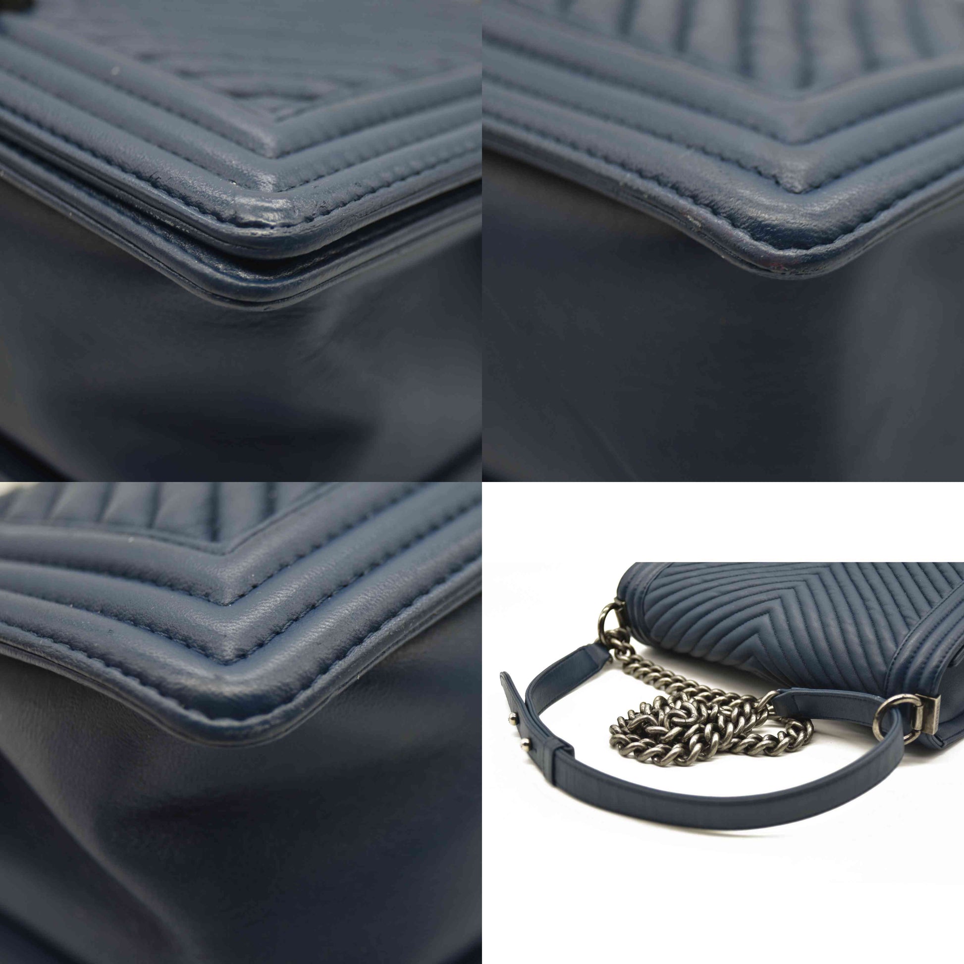 AUCTION $6600 Chanel Wrinkled Leather Chevron Quilted Old Medium Boy Flap Navy Blue