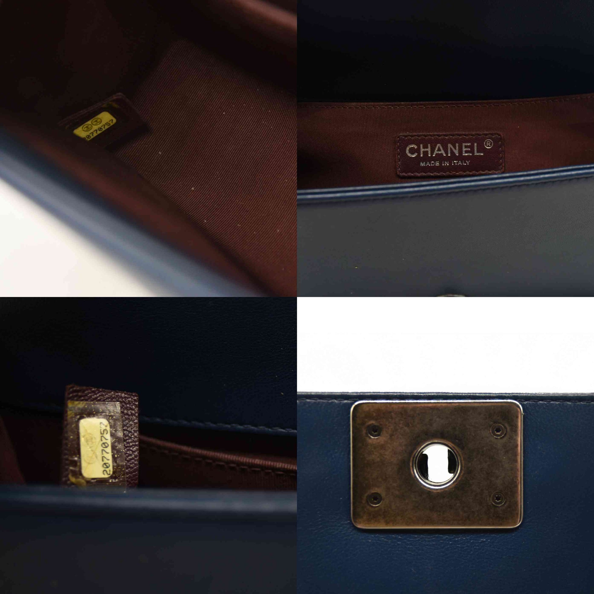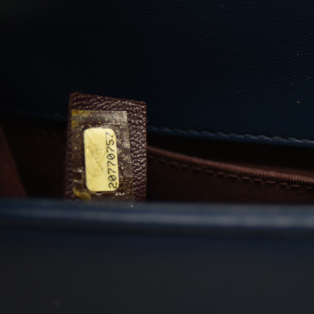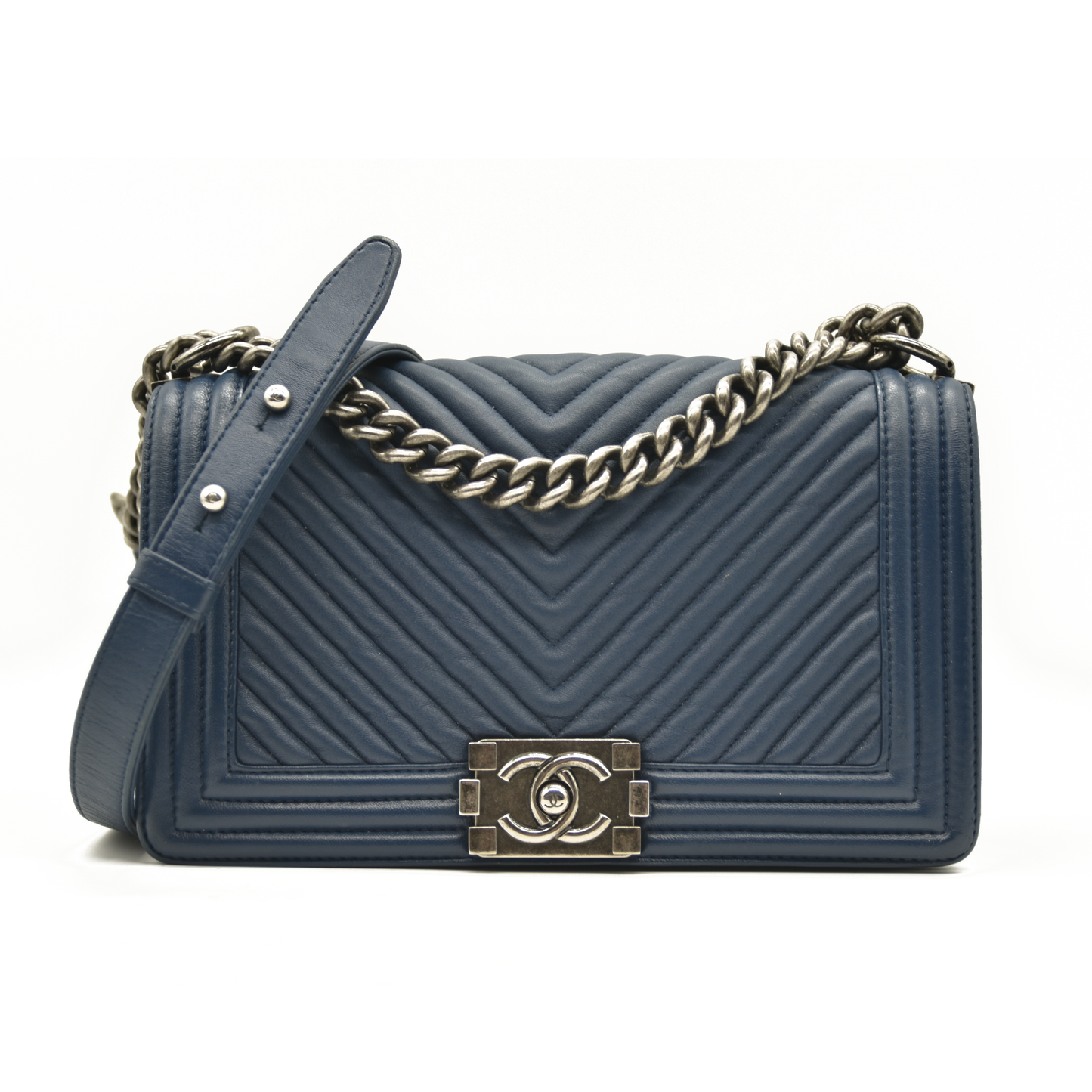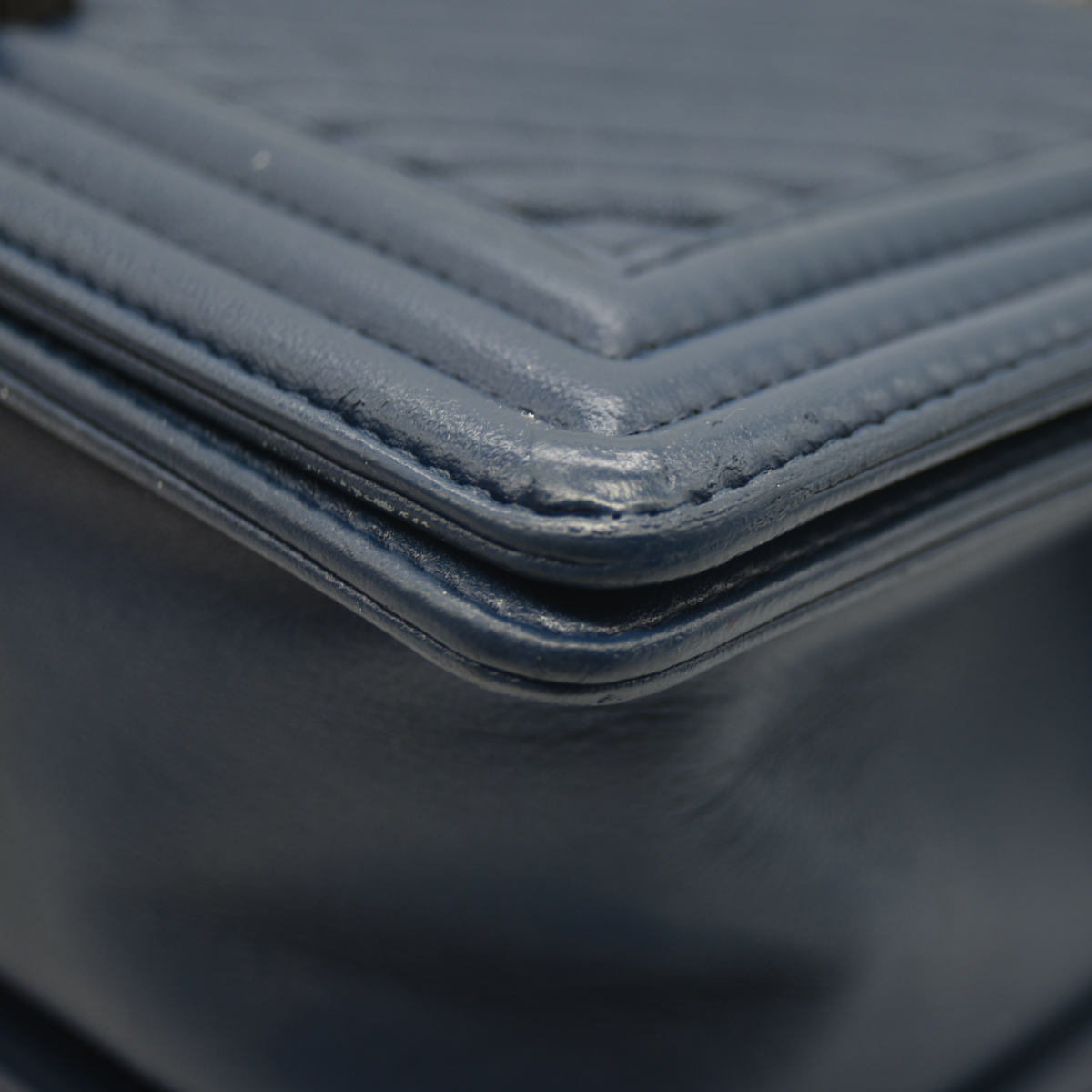 AUCTION $6600 Chanel Wrinkled Leather Chevron Quilted Old Medium Boy Flap Navy Blue
