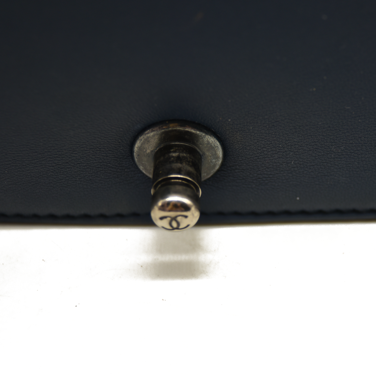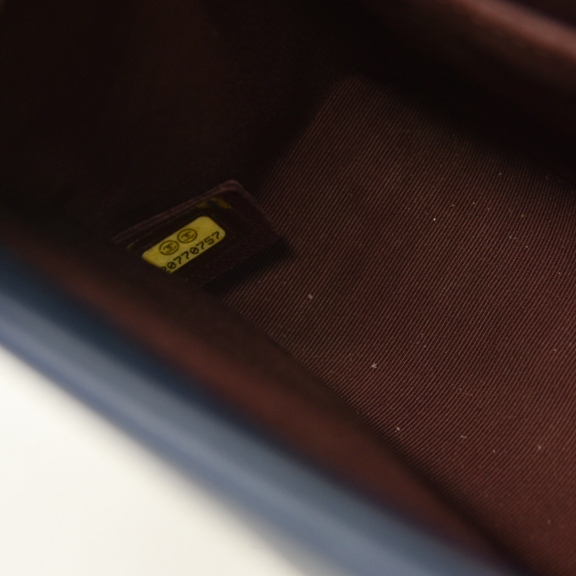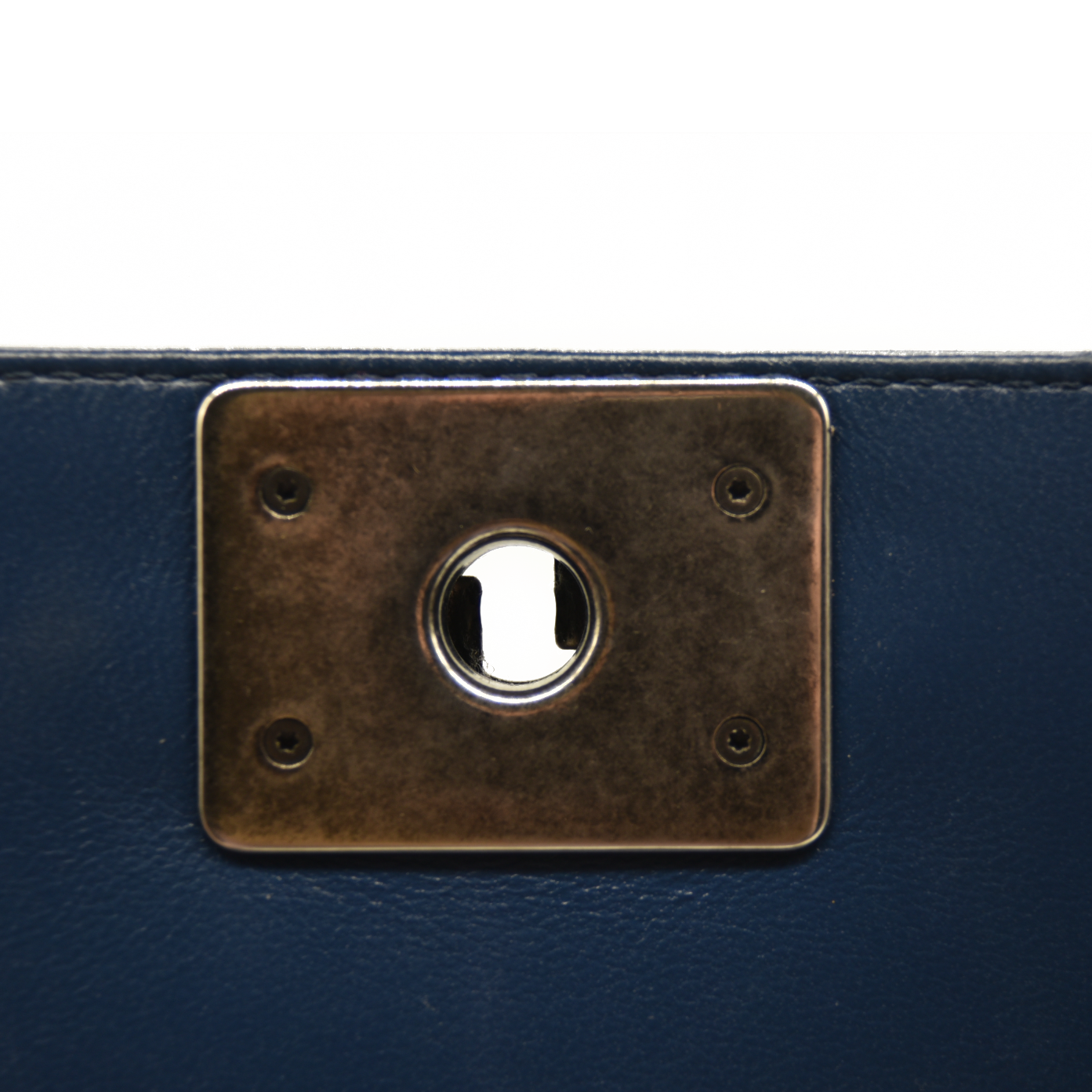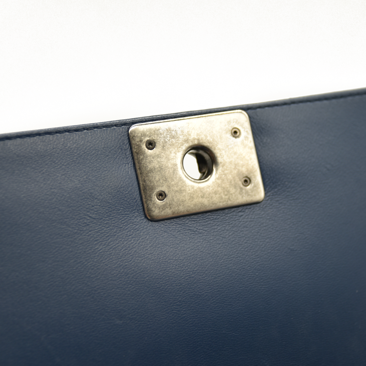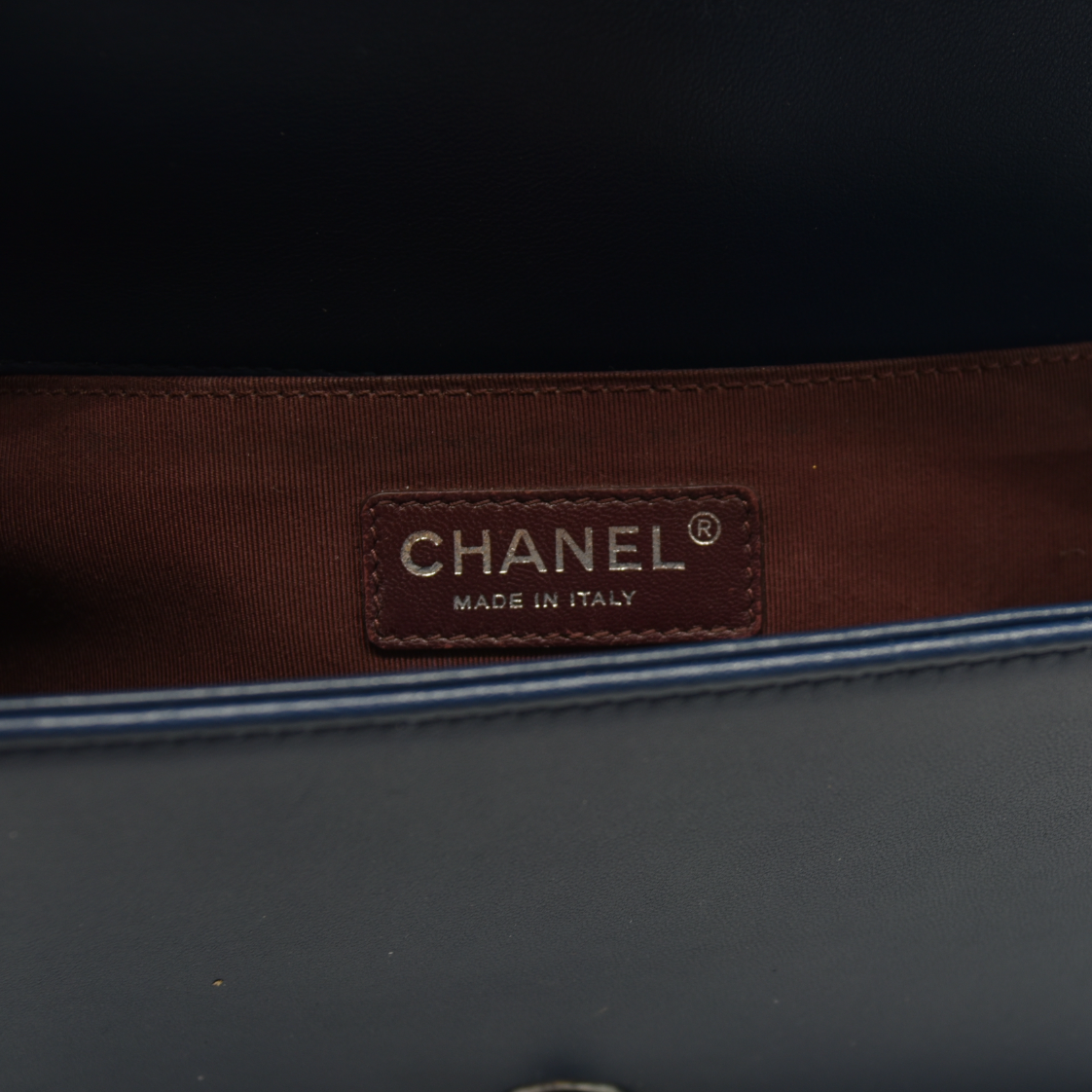 AUCTION $6600 Chanel Wrinkled Leather Chevron Quilted Old Medium Boy Flap Navy Blue