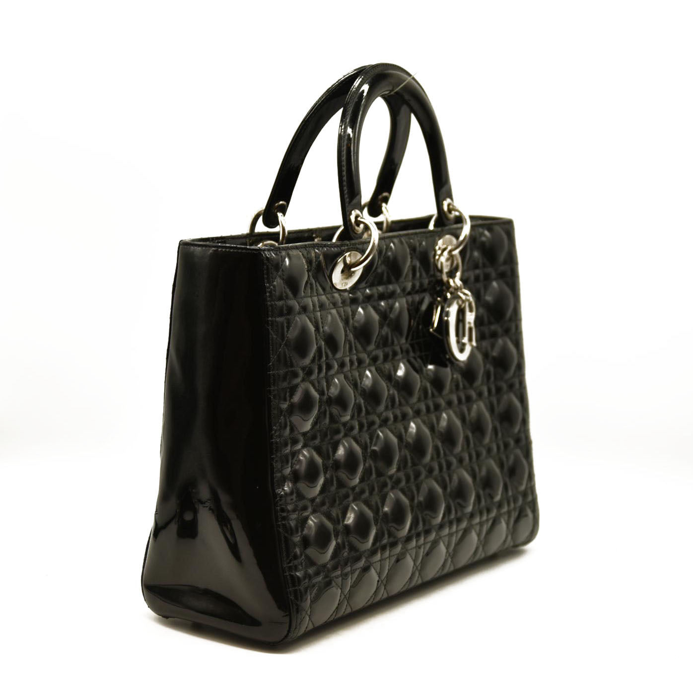 AUCTION $7000 Christian Dior Patent Cannage Large Lady Dior Black
