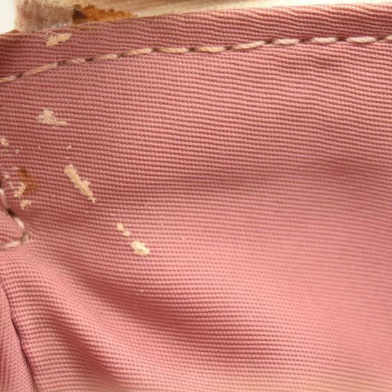 [Outside] overall : slight discoloration bottom : slight corner rubbing strap : slight fabric peeling main opening : obviously discolored [Inside] overall : slight discoloration