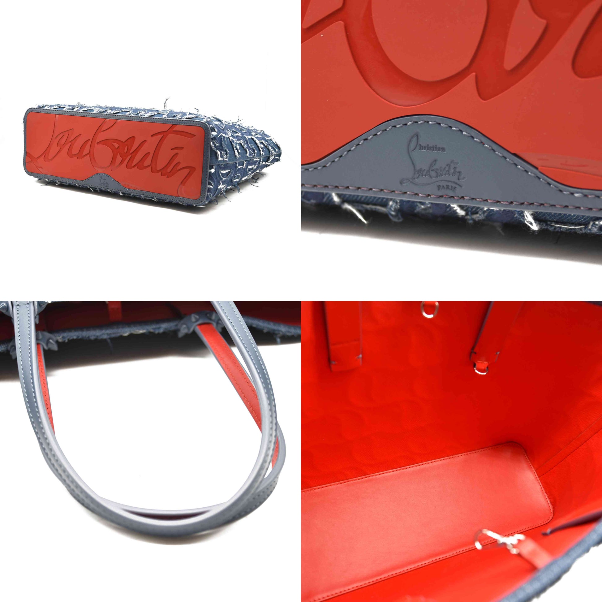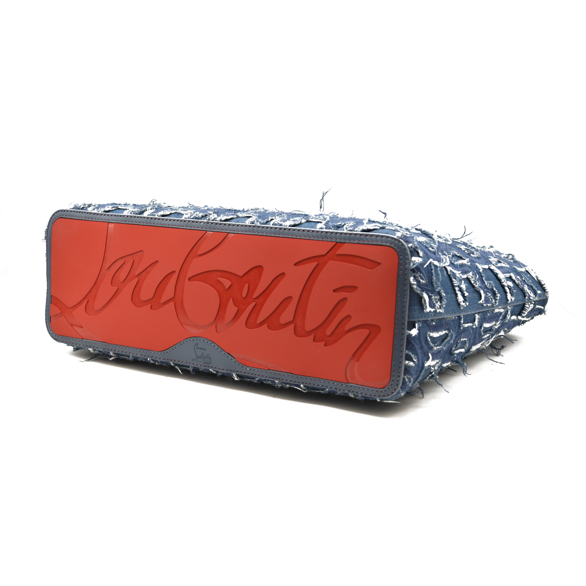 Introducing the Christian Louboutin Cabata Small Leather-Trim Tote, a stunning addition to your handbag collection. Crafted in Italy, this tote features denim blue fabric and leather with tonal blue hardware, showcasing the brand's signature elegance and technical proficiency. The blue cotton fabric is finished with fringing and an embroidered CL logo, complemented by tonal spikes for a touch of edge.The interior boasts a vibrant Louboutin red lining and includes a detachable zip pouch for added versatility. Measuring 13.4 inches wide, 9.5 inches high, and 4.7 inches deep, this tote is both practical and stylish. With top handles that have a 7.9-inch drop, this bag is easy to carry and adds a pop of color to any outfit.Please note that all measurements are approximate and may have slight variations. Rest assured, this product is 100% genuine, sourced from trusted independent suppliers to guarantee authenticity. Elevate your look with the Christian Louboutin Cabata Small Leather-Trim Tote, a must-have for fashion-forward women everywhere