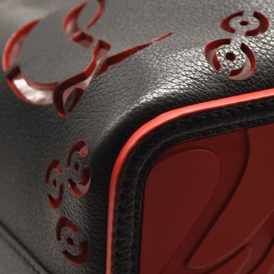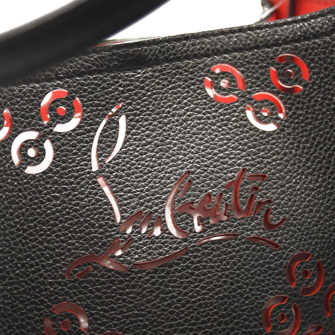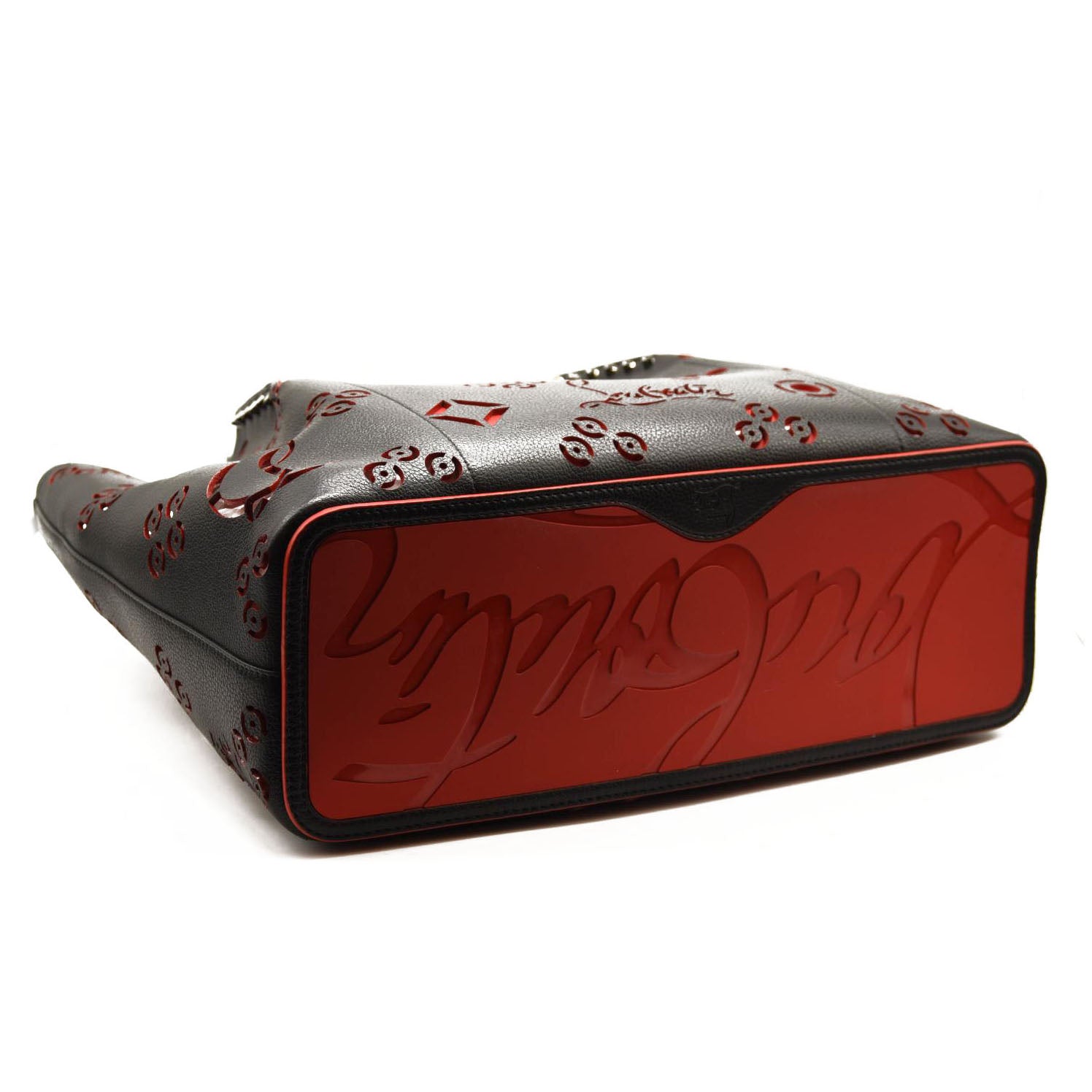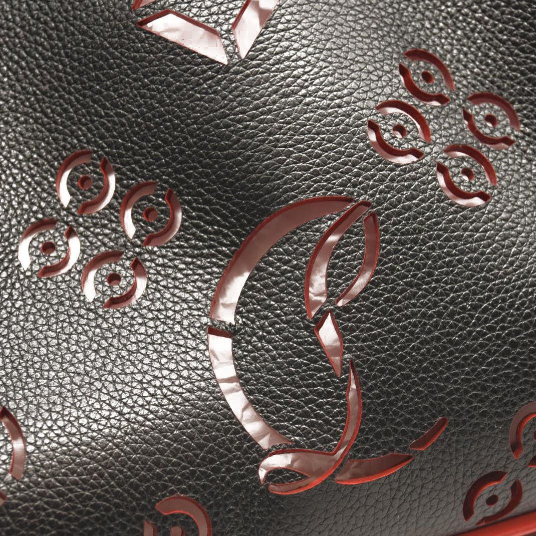 CHRISTIAN LOUBOUTIN Calfskin Loubinthesky Large Perforated Cabarock Spikes Tote Black
