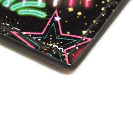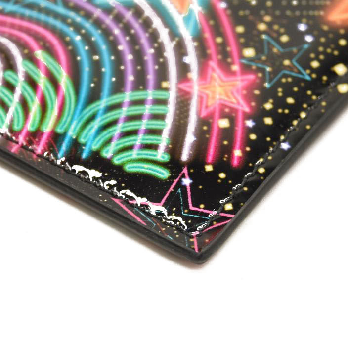 Louboutin brings all the chaotic energy of Sin City to this Italian-crafted card holder in patent calfskin featuring a bold print inspired by neon lights.