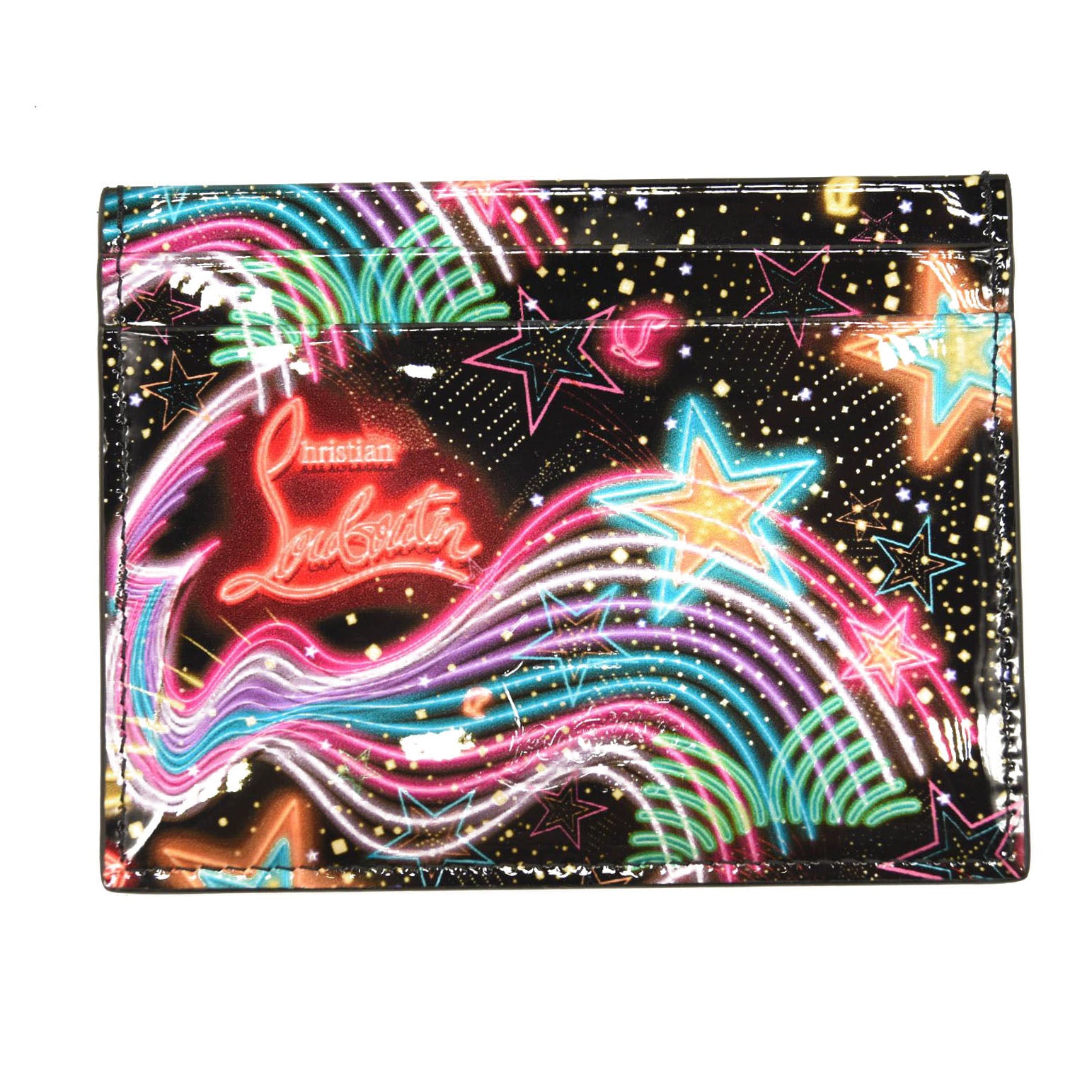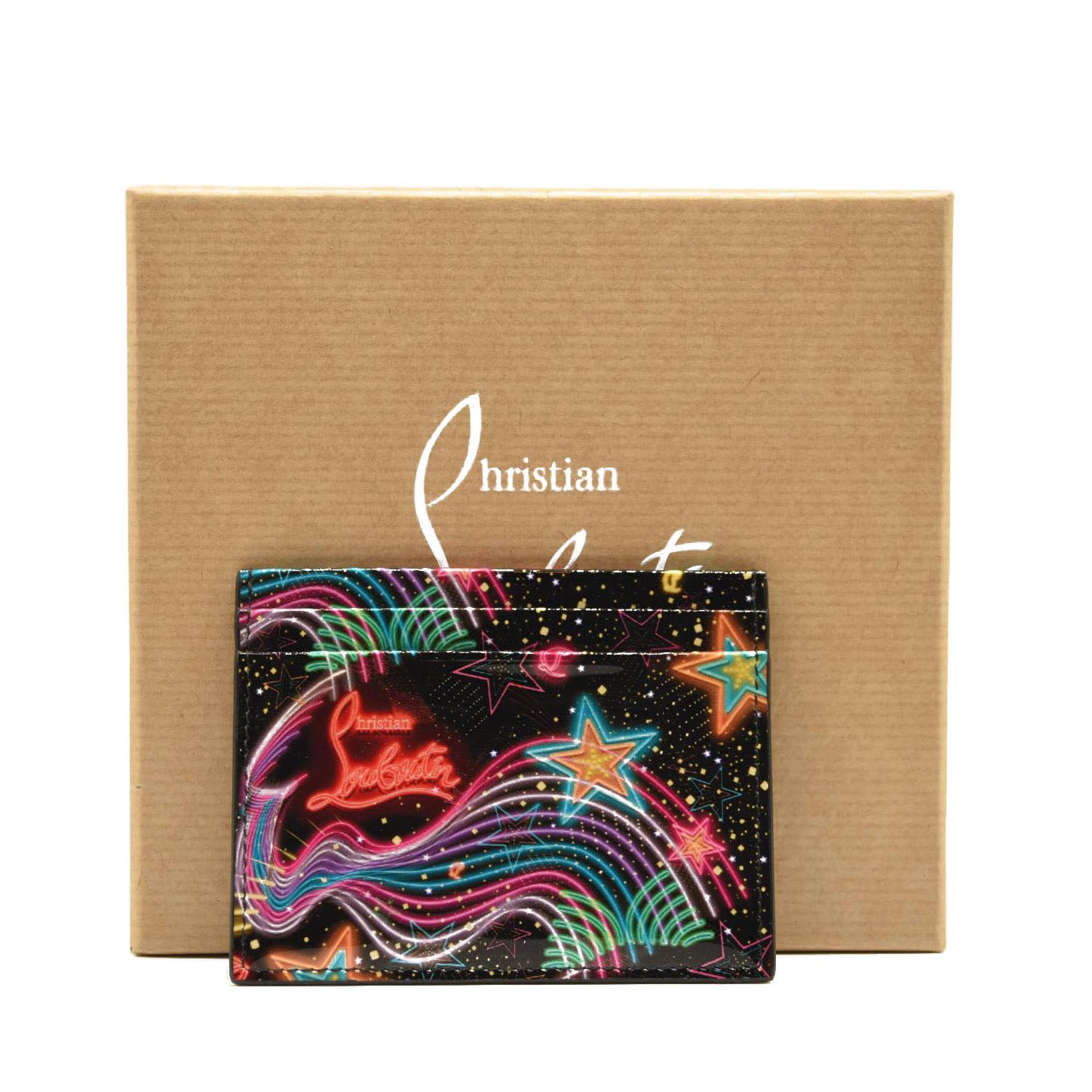 New CHRISTIAN LOUBOUTIN KIOS STARLIGHT PRINT PATENT LEATHER CARD HOLDER