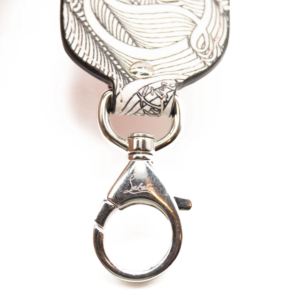 This is an authentic CHRISTIAN LOUBOUTIN Loubila Hybrid Monogram Pouch Crossbody Bag In White/black. This chic chain wallet is crafted of white/black coated canvas. This bag features a silver chain strap, an optional white nylon shoulder strap with a coin purse, and silver hardware. The top zipper opens to a red fabric interior.