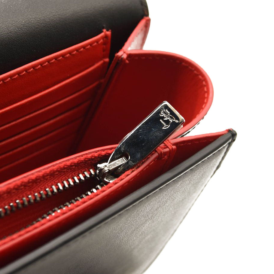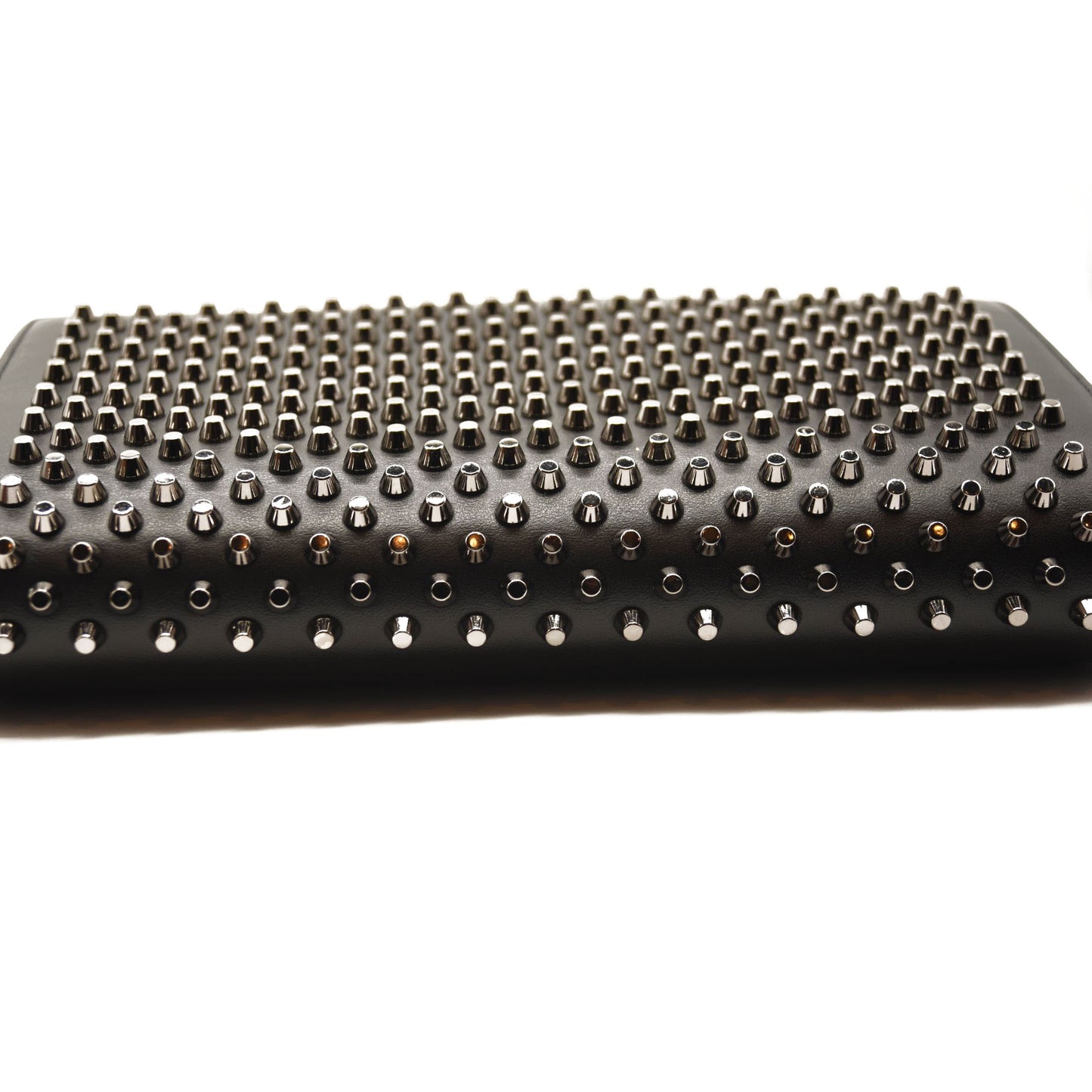 Crafted in smooth Italian calfskin leather and punctuated by regimented rows of dimensional studs, this convertible clutch will grab the attention of admirers. Multiple interior pockets in va-va-voom red make it perfect for stashing your cards and essentials, while an optional shoulder strap allows you to carry the structured silhouette as a shoulder bag or rock it solo as a clutch.