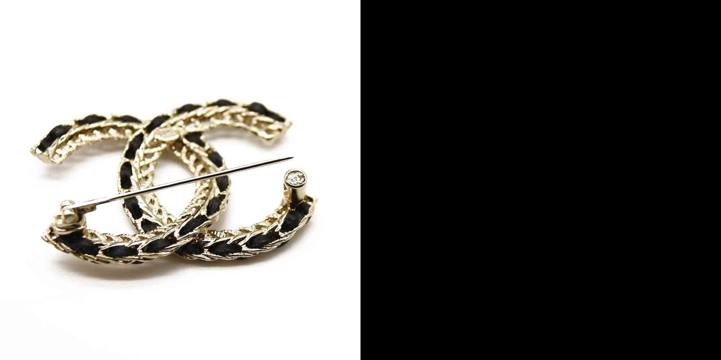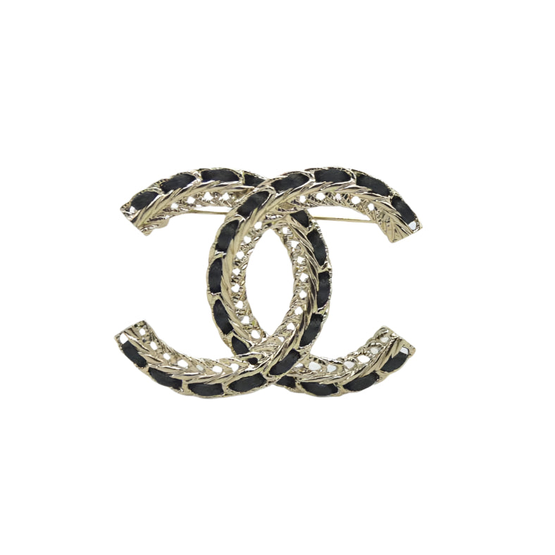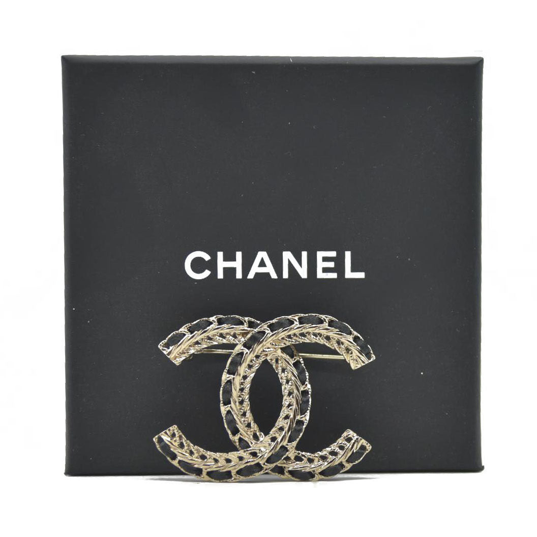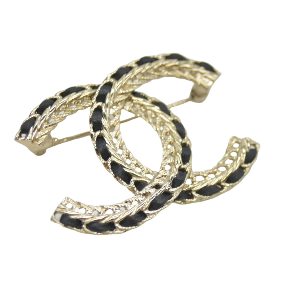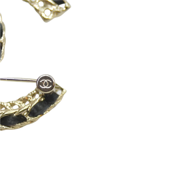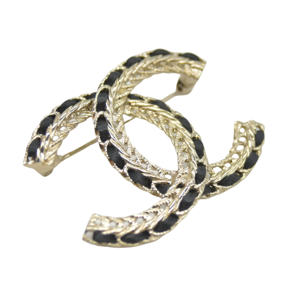CHANEL Lambskin Chain CC Brooch Black Gold