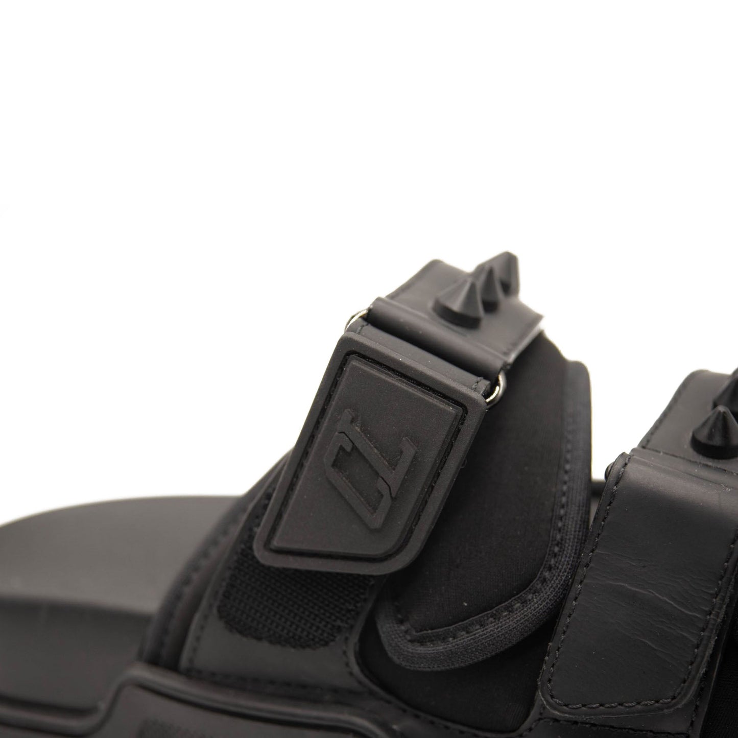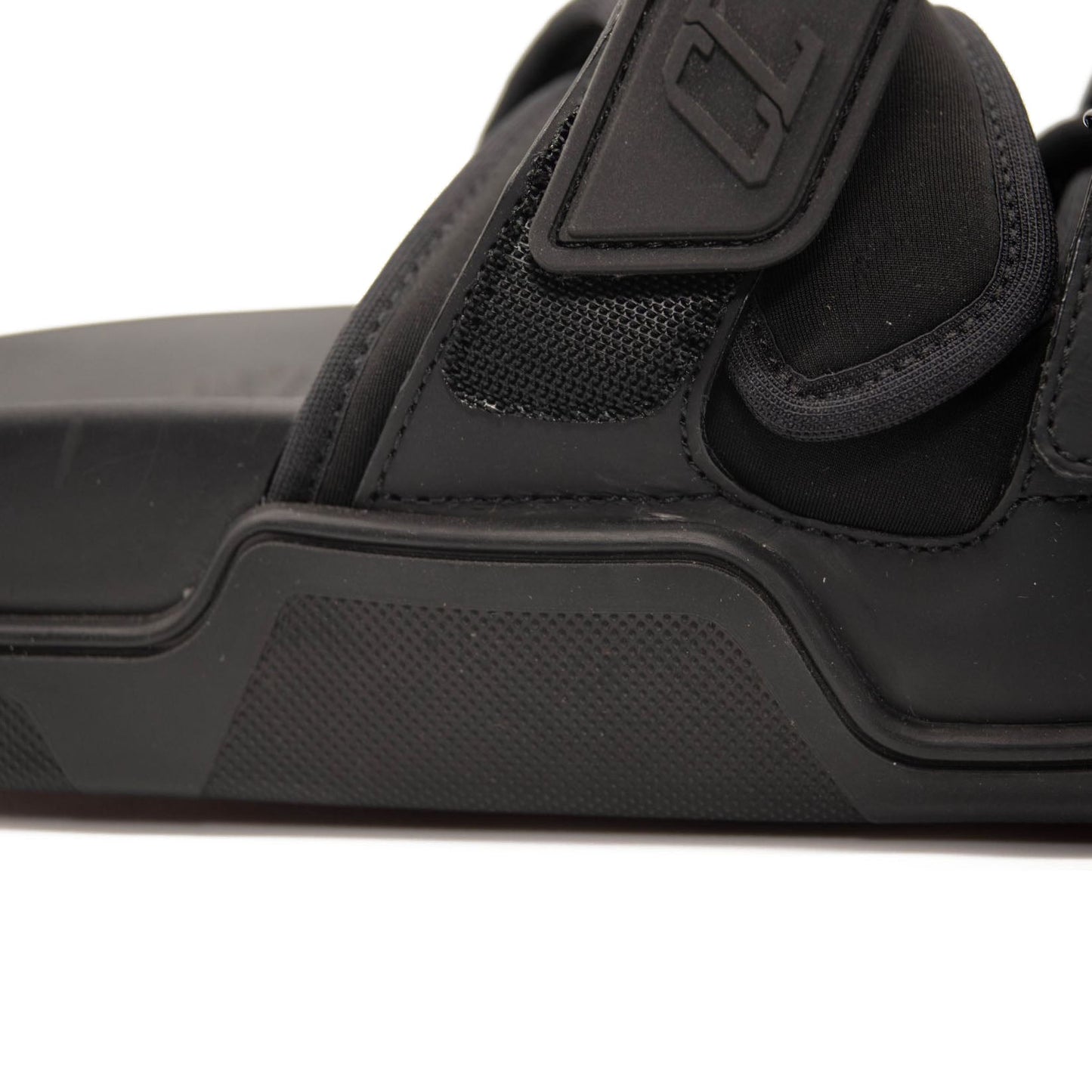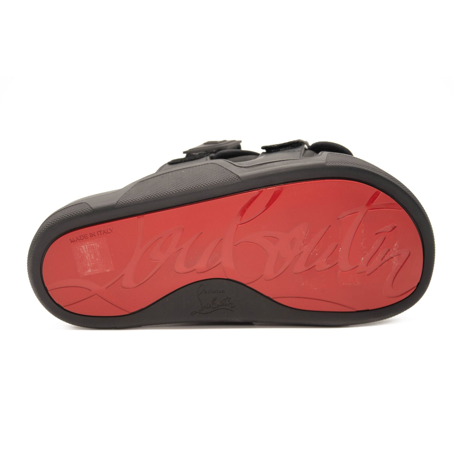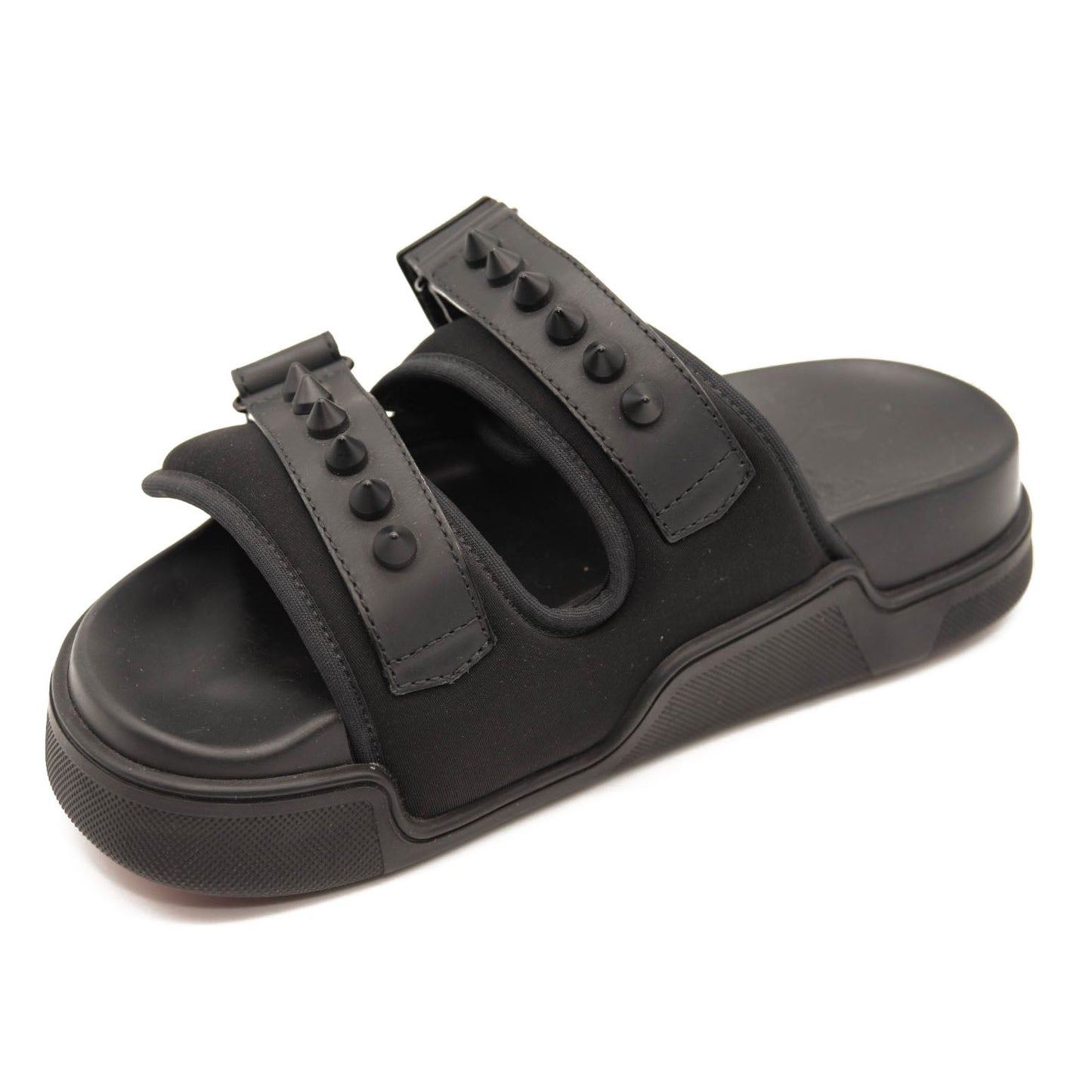 This is an authentic pair of Christian Louboutin DADDY POOL DONNA Spiked Studded Flat Slide Sandals 37EU in Black. These stylish sandals are comfortably elevated with a molded footbed and sporty platform flashing a logo-debossed red sole and crafted of Leather, with a leather crossover strap covered in tonal studs. Wear these sandals for an iconic look, only from Christian Louboutin!