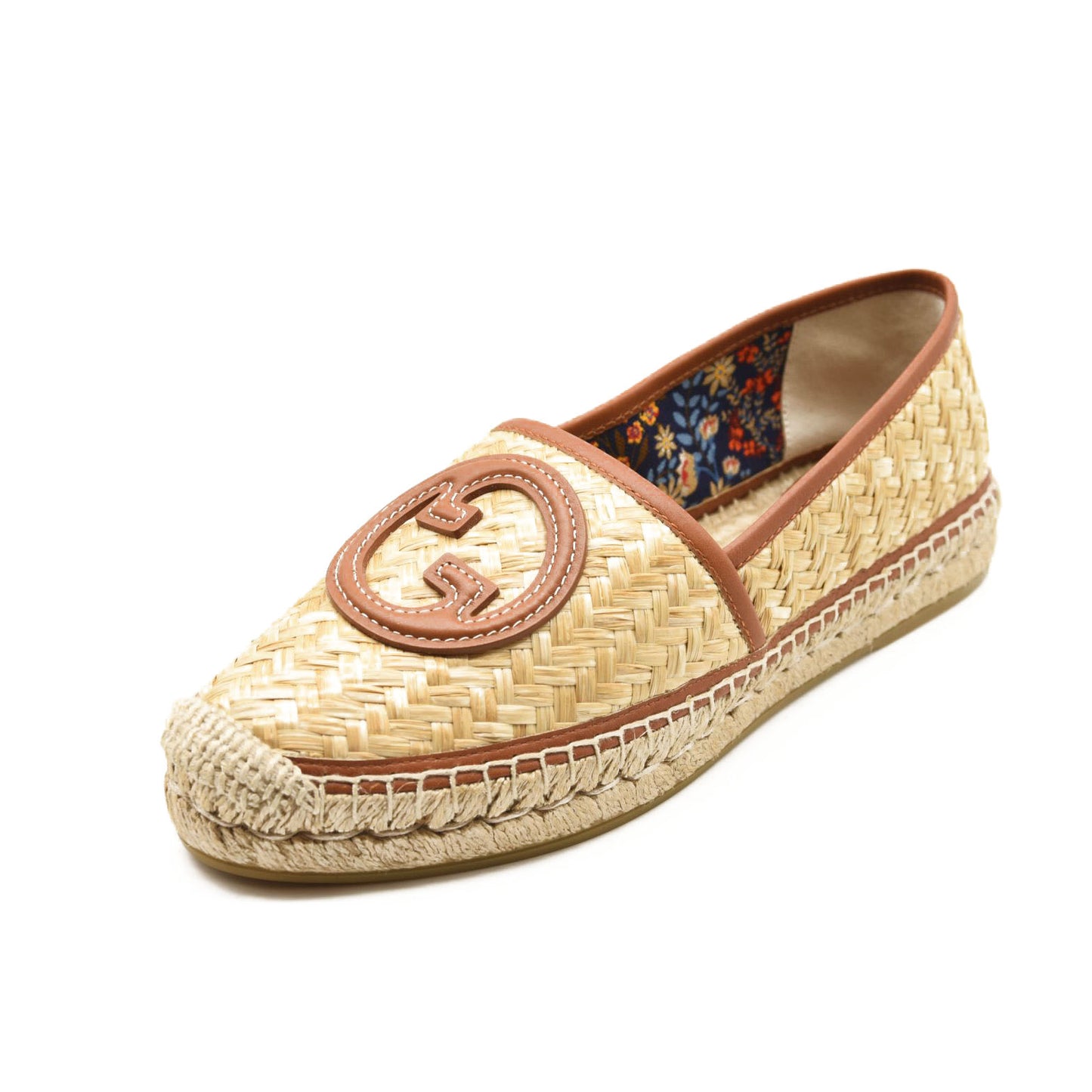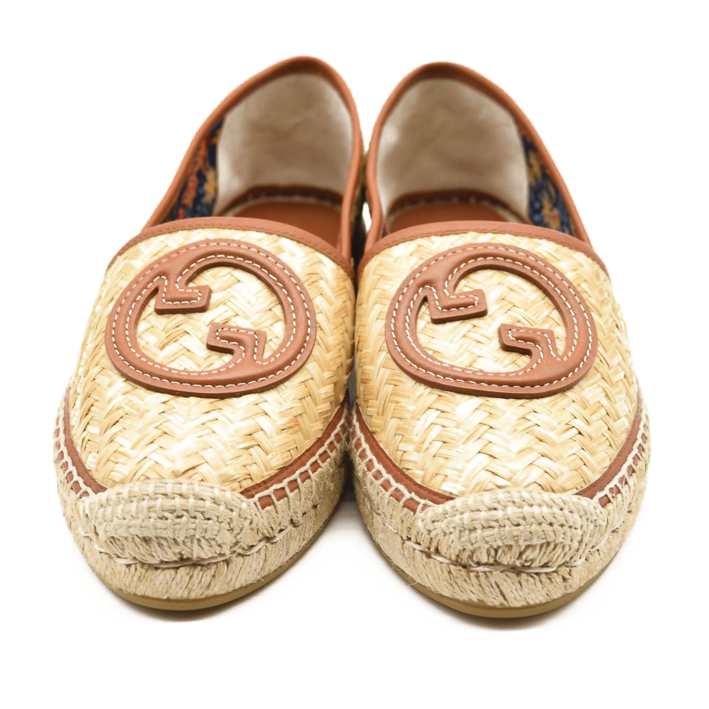 Gucci "Adela" woven raffia espadrilles with leather trim