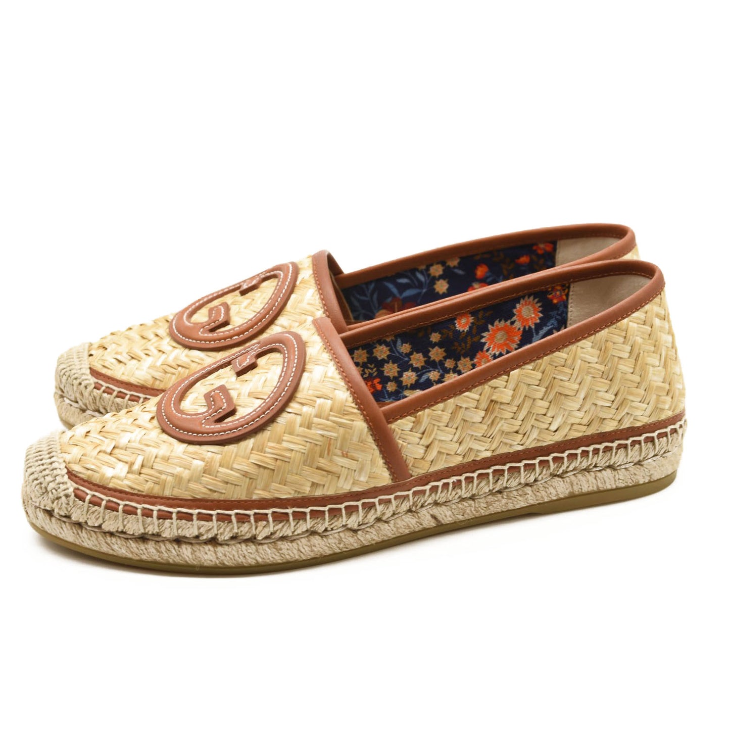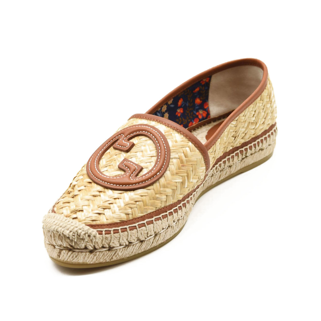 Gucci "Adela" woven raffia espadrilles with leather trim