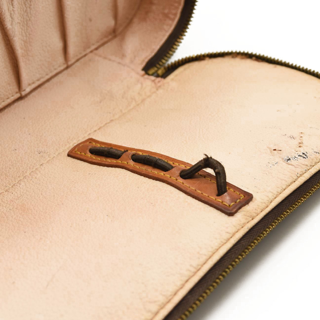 Interior: Residue marks, minor pilling, faint cracks, surface wear, stains