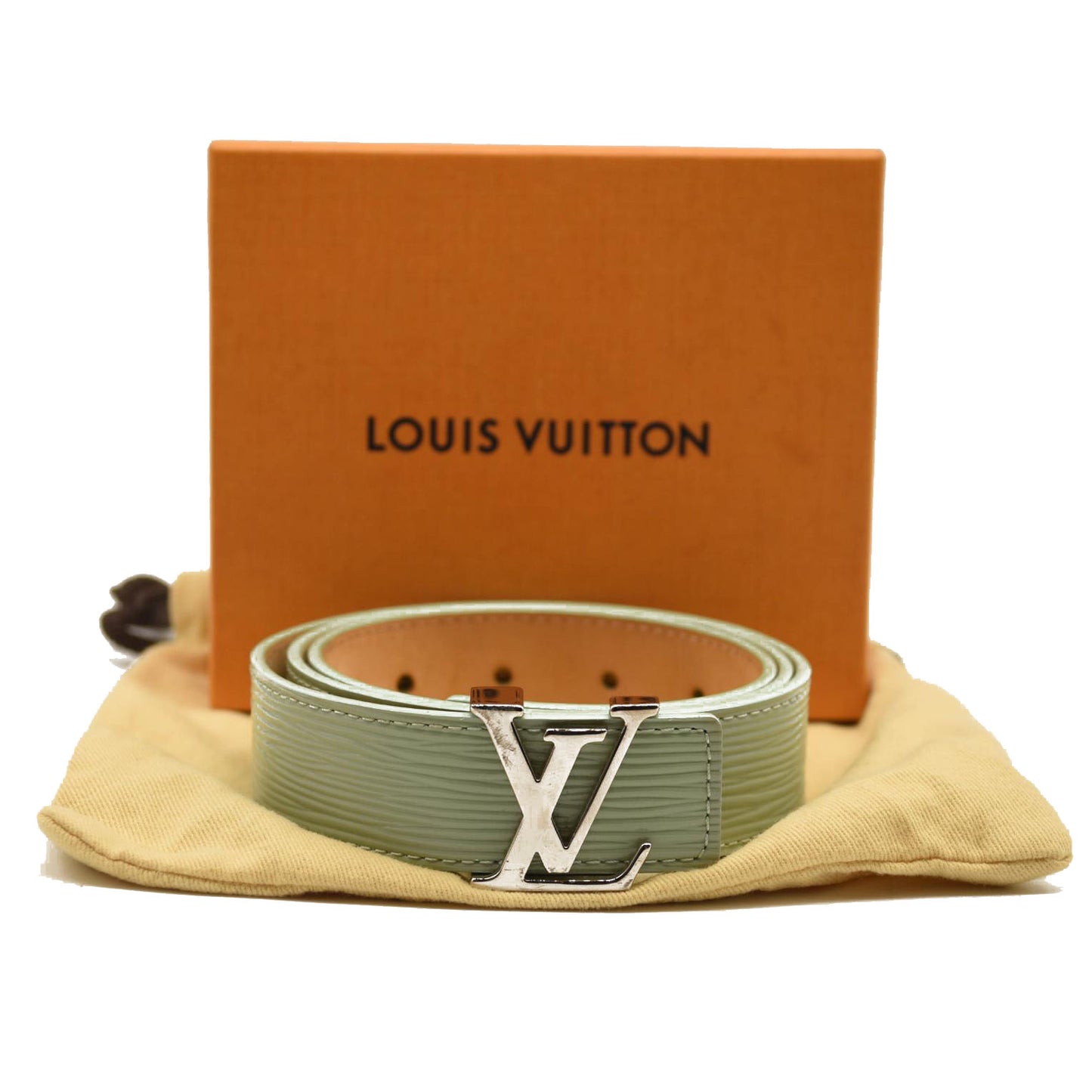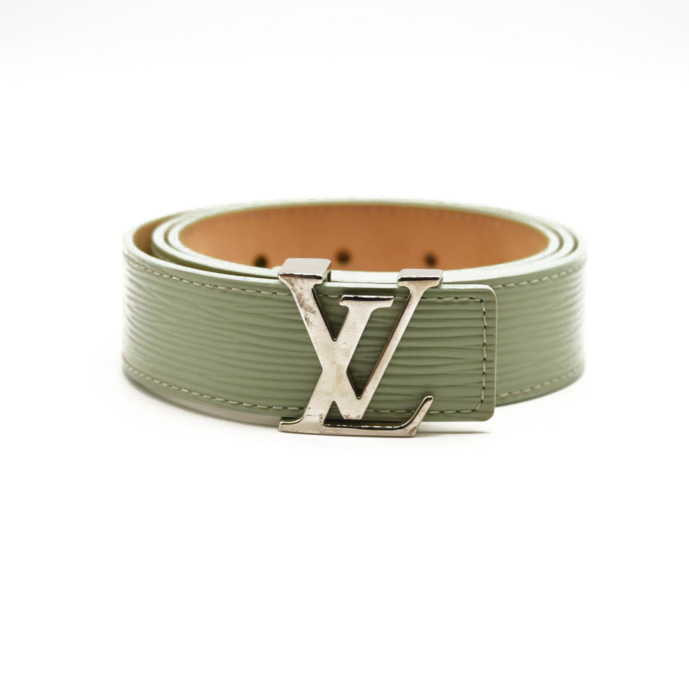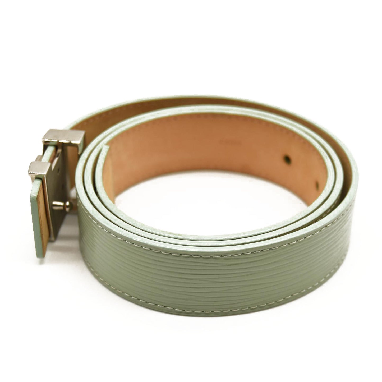 This is an authentic LOUIS VUITTON Epi Electric 40mm LV Initiales Belt 85 34 in Amande. This chic belt is crafted of Louis Vuitton signature textured epi leather in light green. The belt features a silver LV buckle. This is an excellent belt to accentuate every day attire with luxury and style of Louis Vuitton!