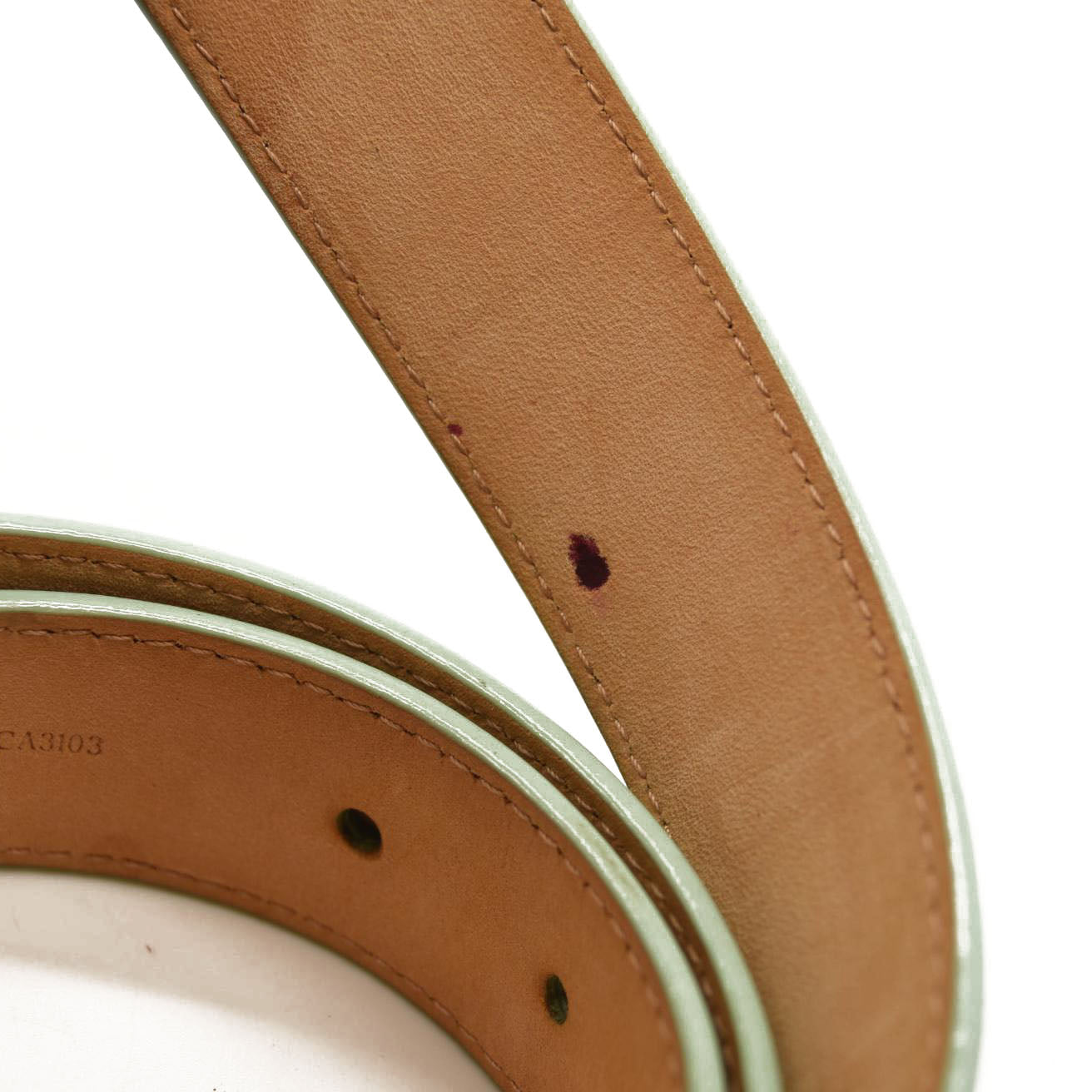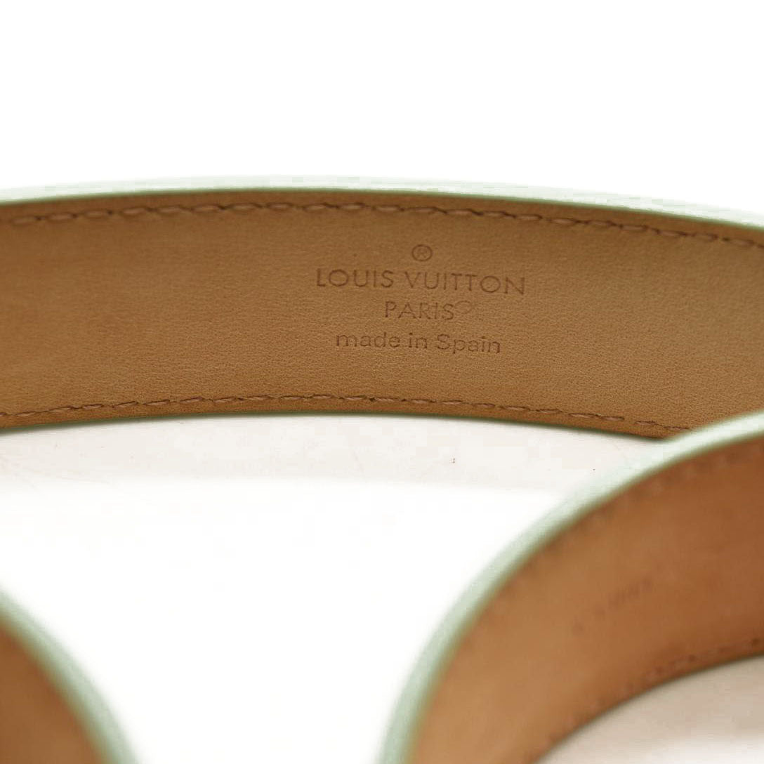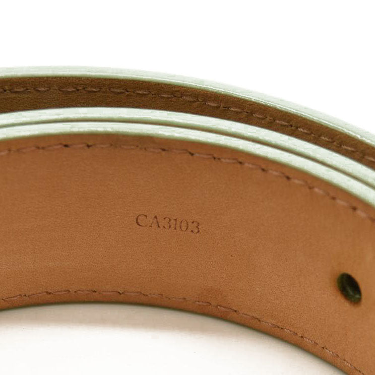 This is an authentic LOUIS VUITTON Epi Electric 40mm LV Initiales Belt 85 34 in Amande. This chic belt is crafted of Louis Vuitton signature textured epi leather in light green. The belt features a silver LV buckle. This is an excellent belt to accentuate every day attire with luxury and style of Louis Vuitton!