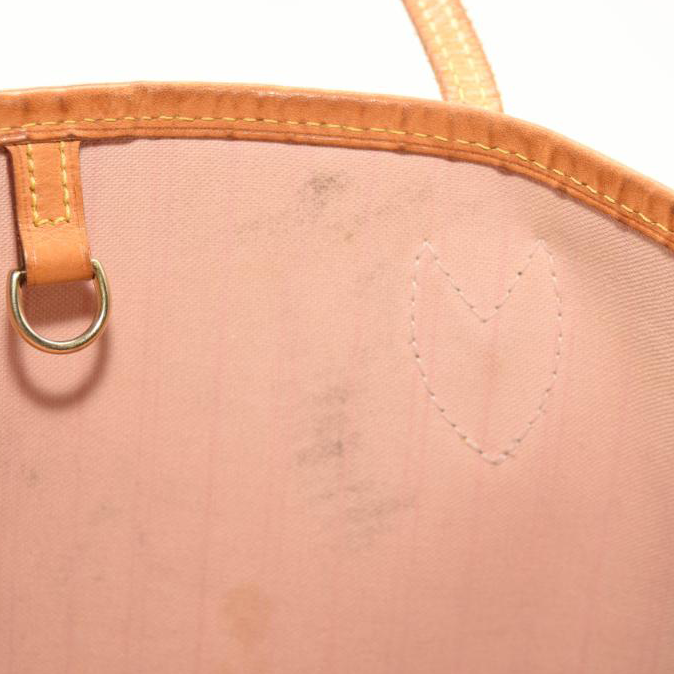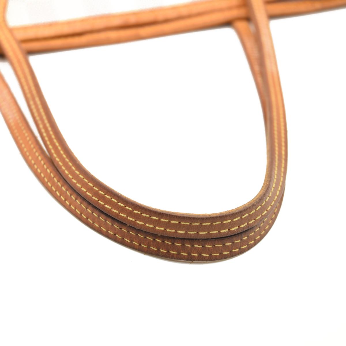Exterior: Patina of vachetta, edge wear, liquid marks, corner wear, surface wear