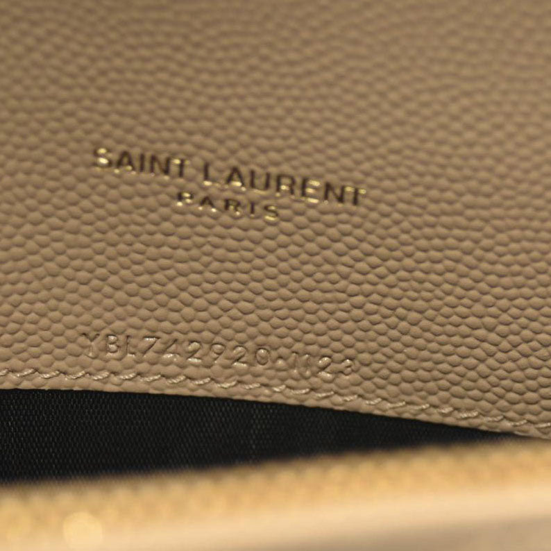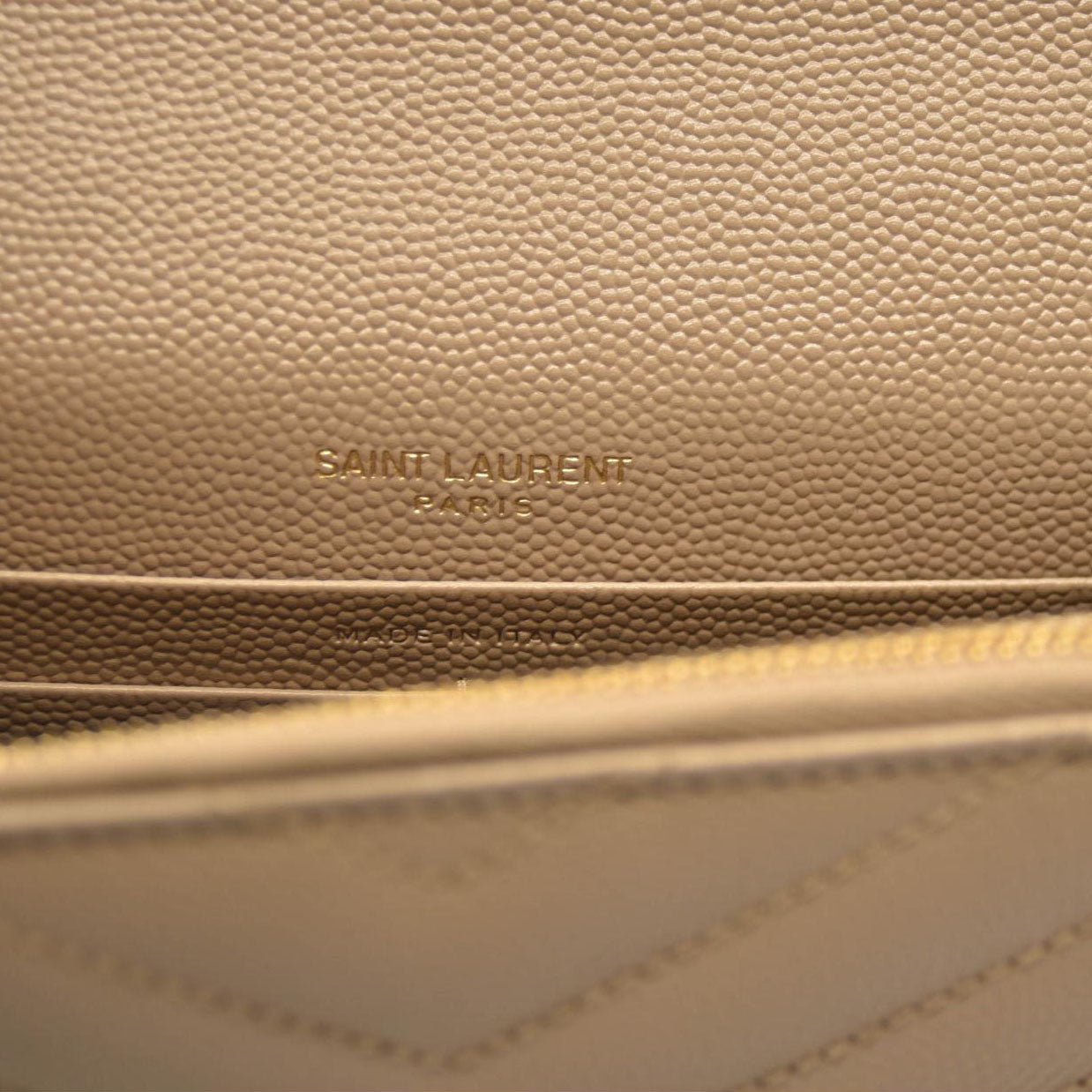 SAINT LAURENT Grain De Poudre Matelasse Chevron Monogram Chain Wallet Dark Beige