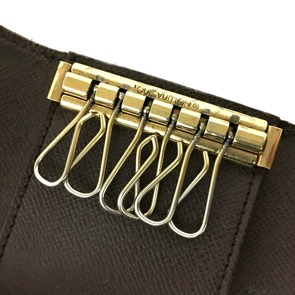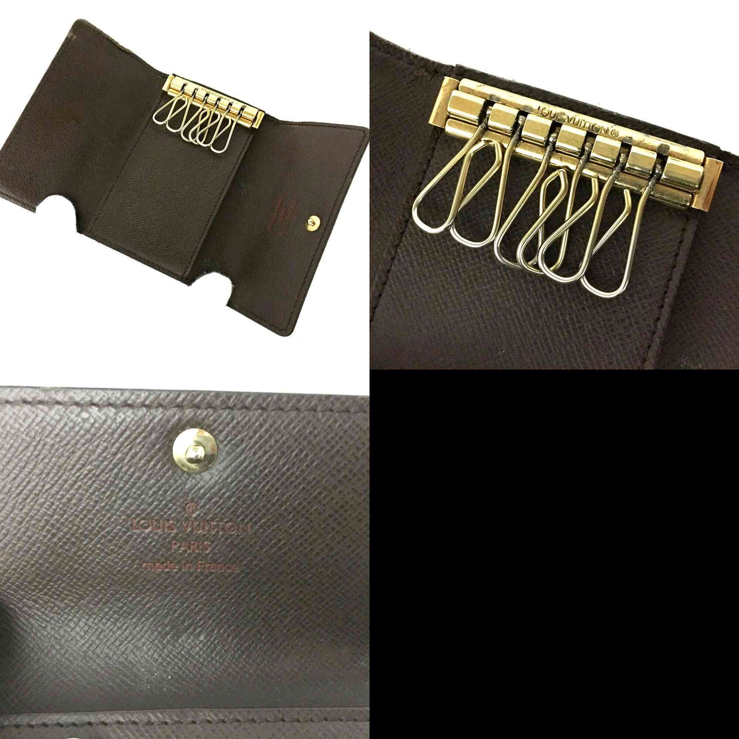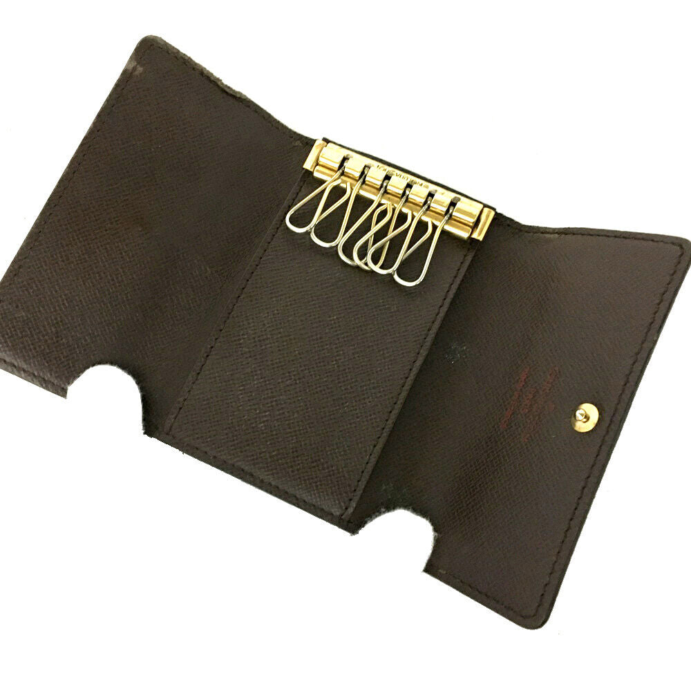 This is an authentic LOUIS VUITTON Damier Ebene Multicles 6 Key Holder. This stylish key holder is crafted of Louis Vuitton signature damier checked canvas. The flap opens to reveal a brown crossgrain leather interior with gold key rings.